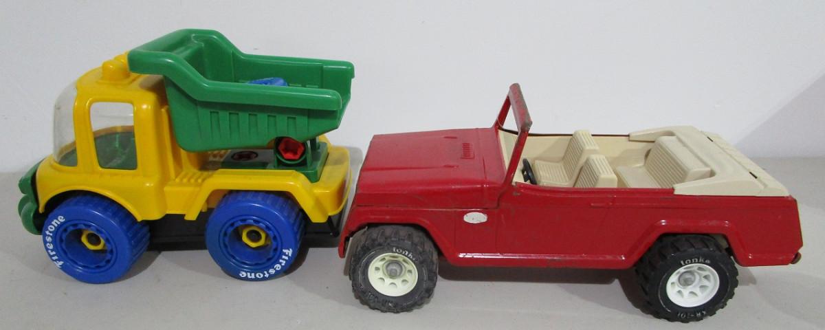 #74 Vintage Tonka metal Jeep and vintage take apart dump truck