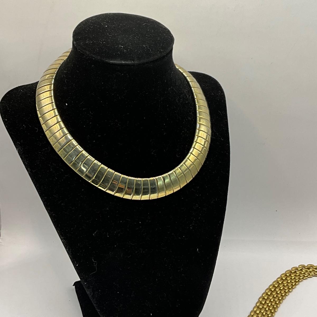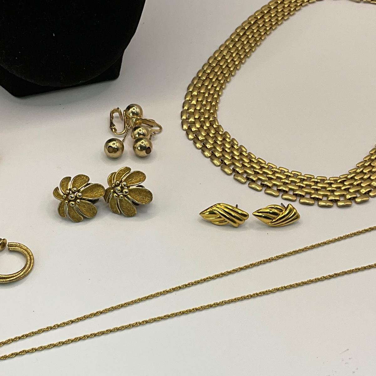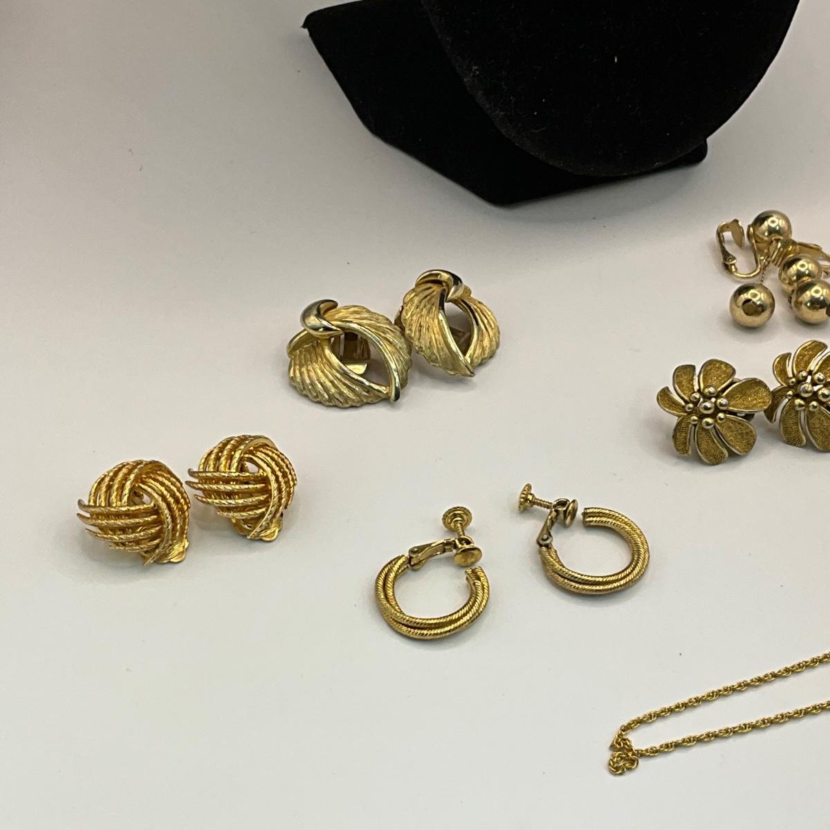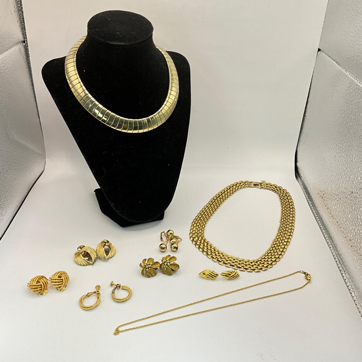 Two large 17" link necklaces, 6 pairs of clip earrings and one small chain necklace 16"