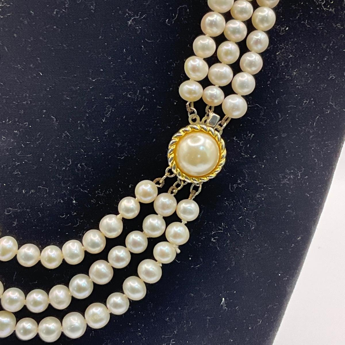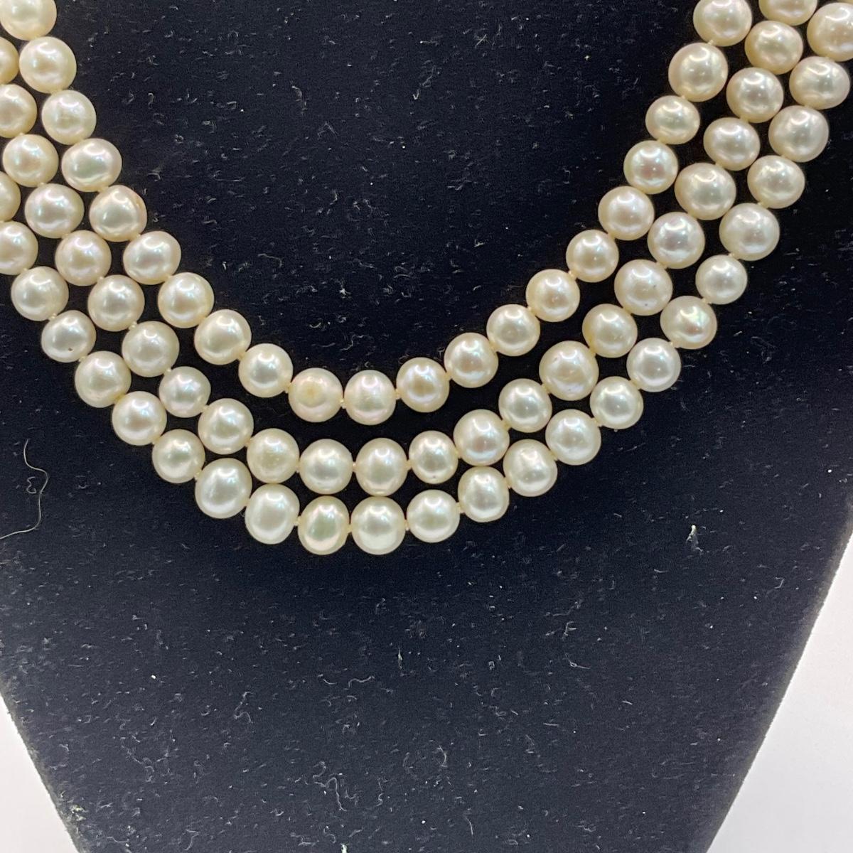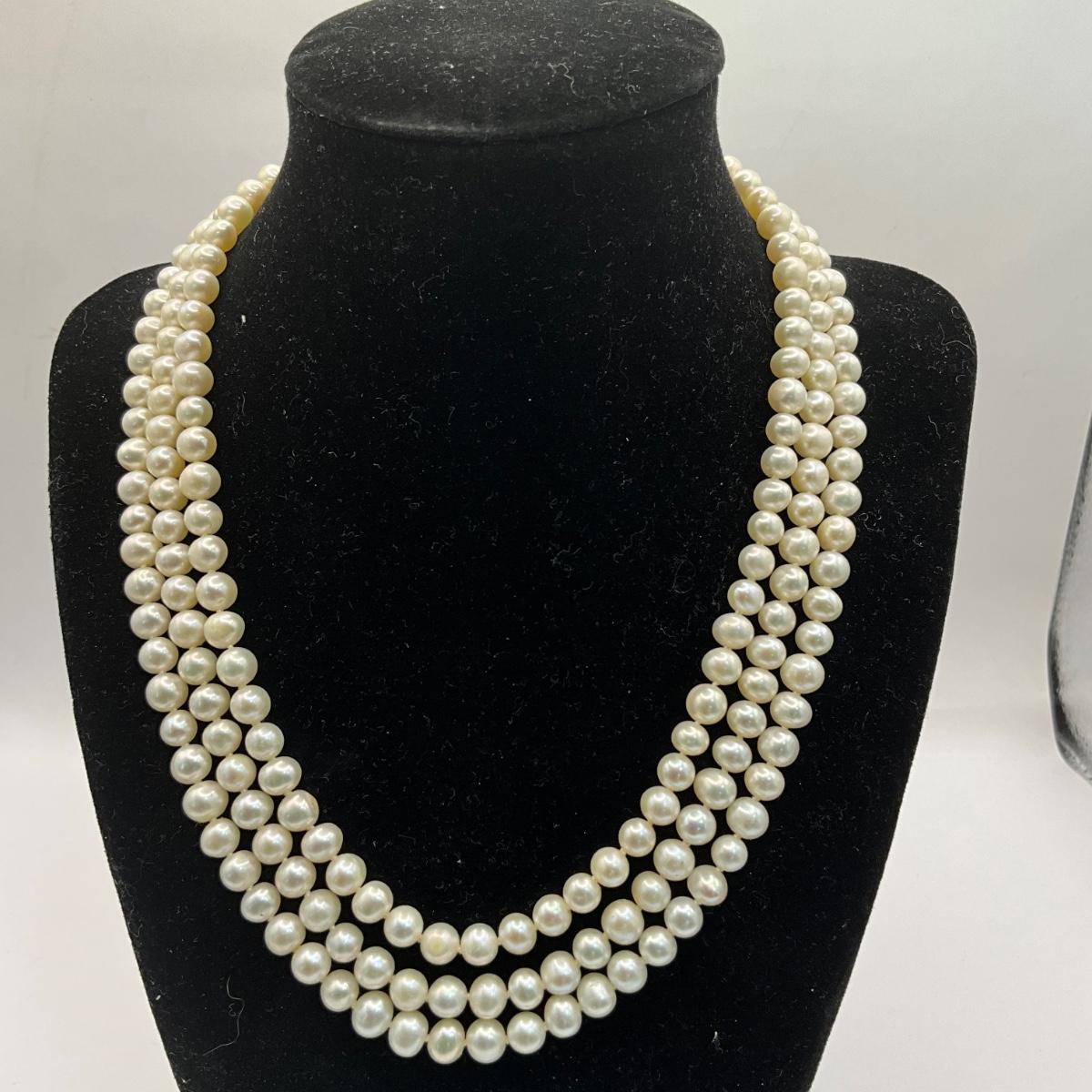743 Triple Strand of 6mm Pearl Necklace with Silver Clap