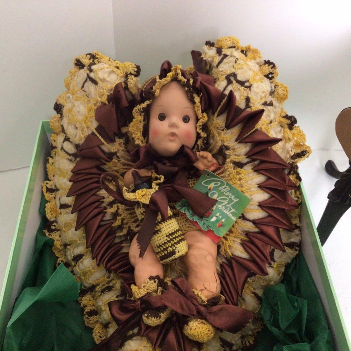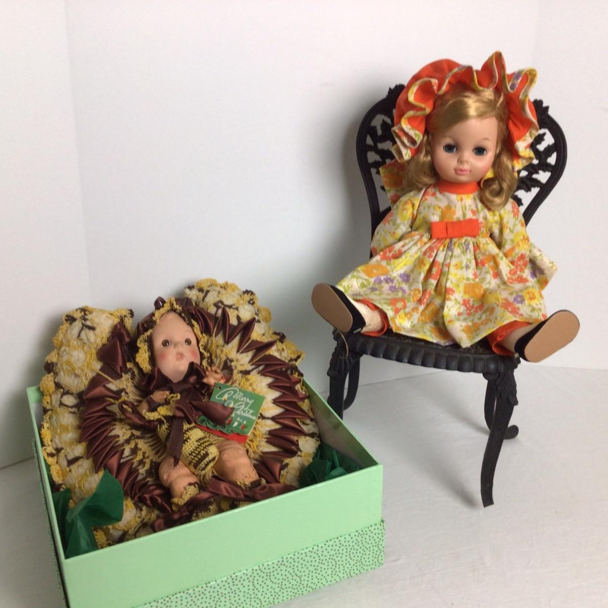 The lot has a cricket pillow baby that the head is no longer attached, the vintage 1970’s doll and cast iron chair that is missing one foot.