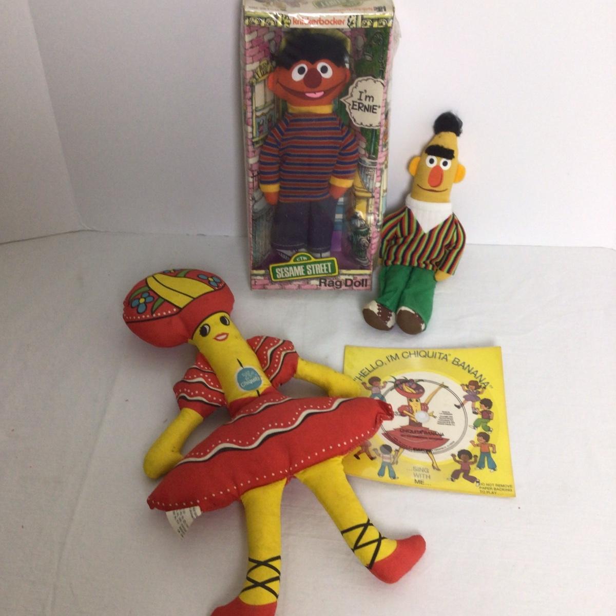 Knickerbocker dolls from 1975-Bert & Ernie. Also included is Chiquita Bonita Banana doll.