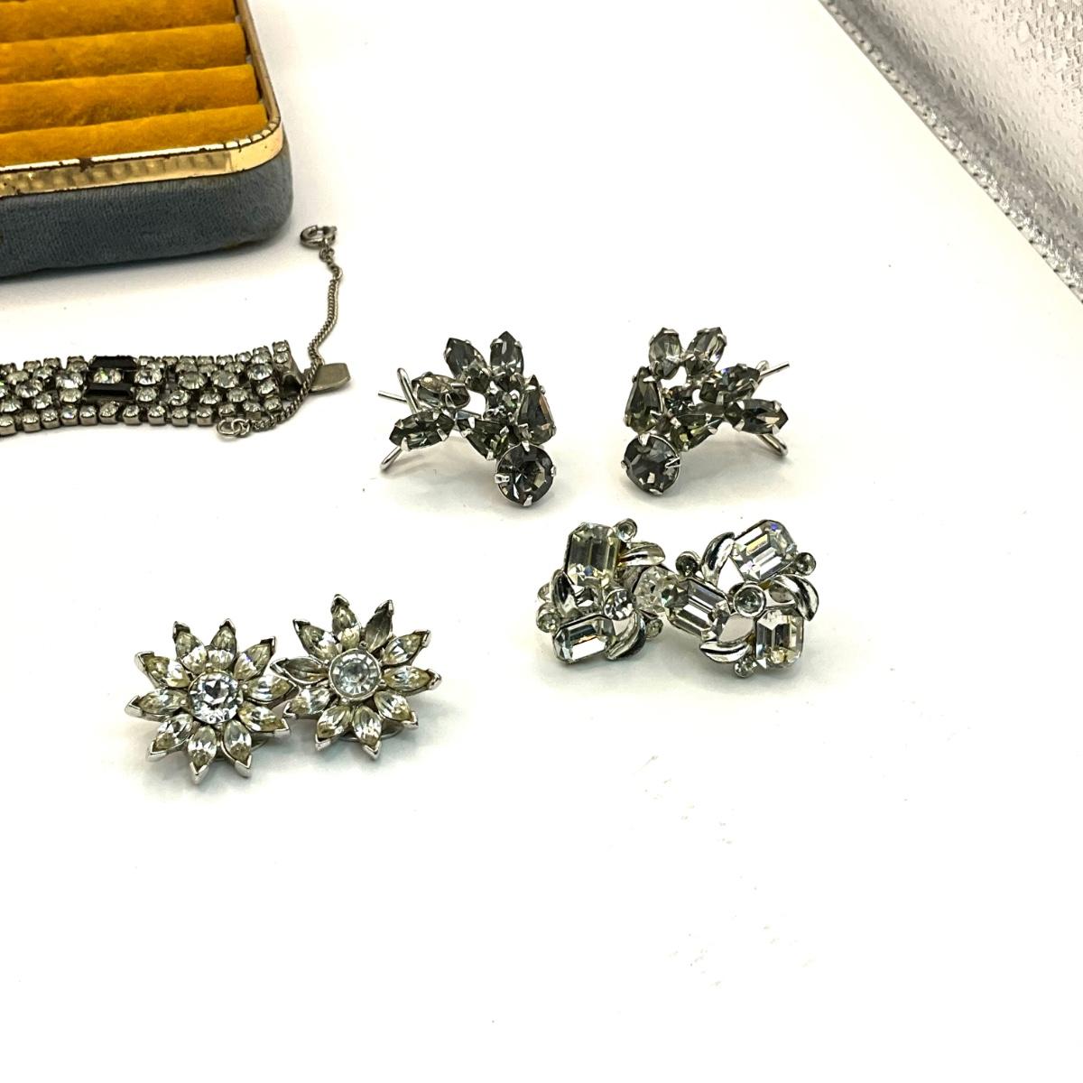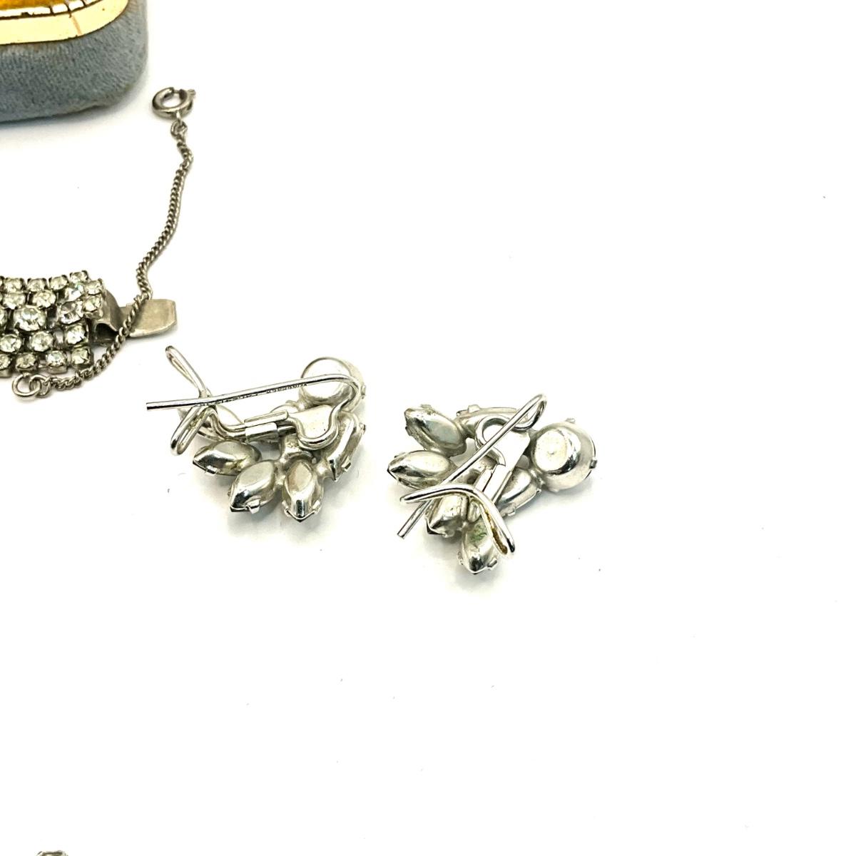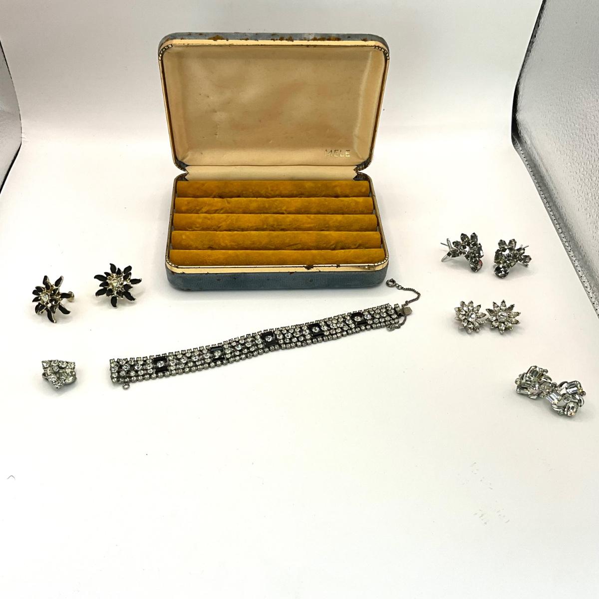 Bracelet measures 7" with Lisner clip earrings and wingback rhinestone earrings