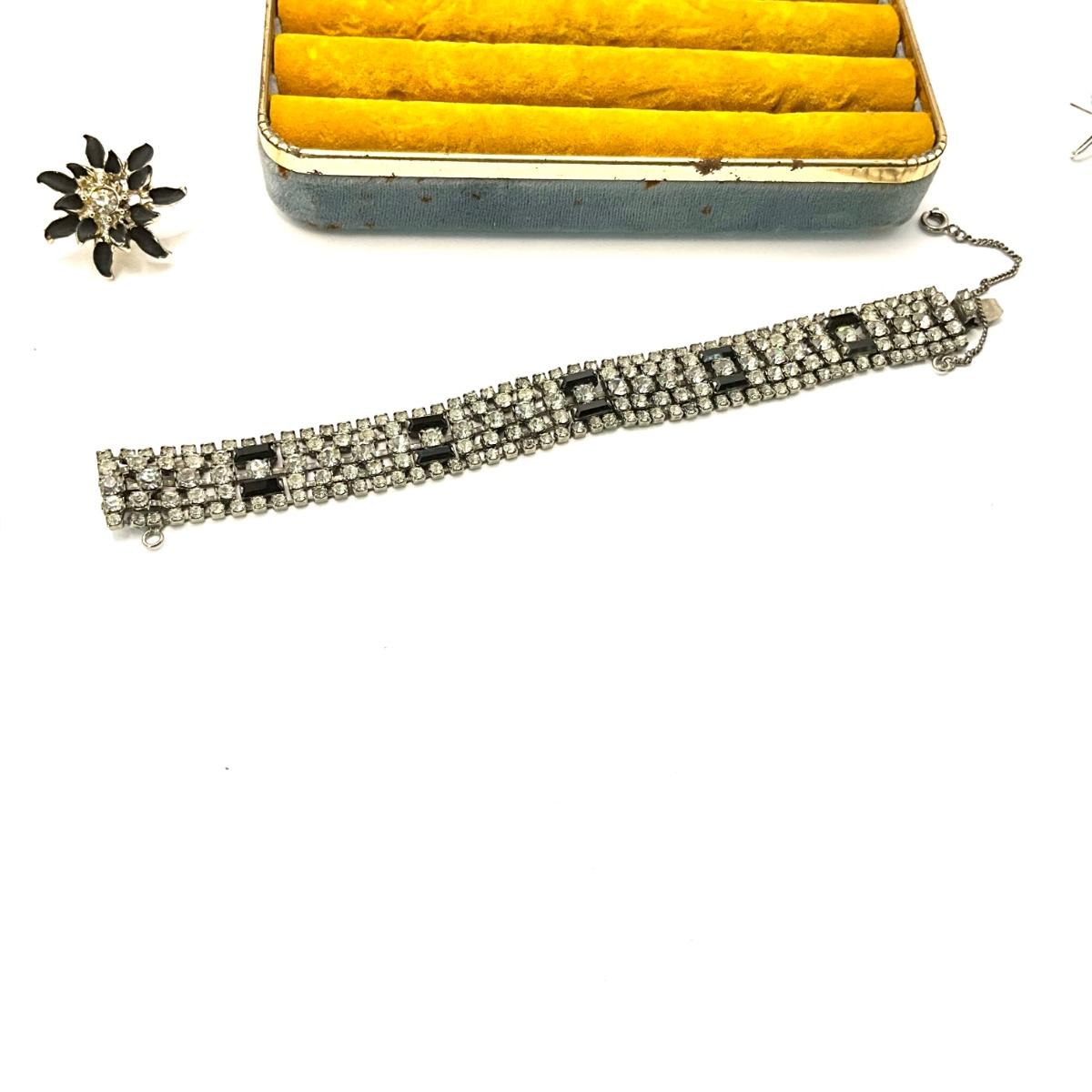 747 Vintage Black Rhinestone Bracelet with Wingback Rhinestone Earrings