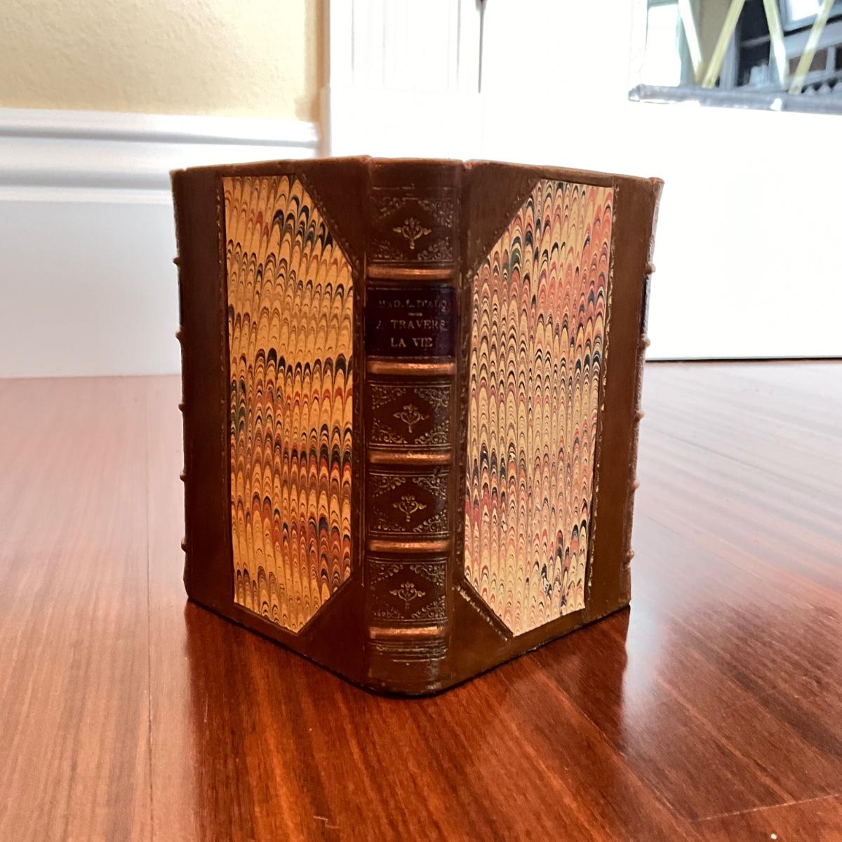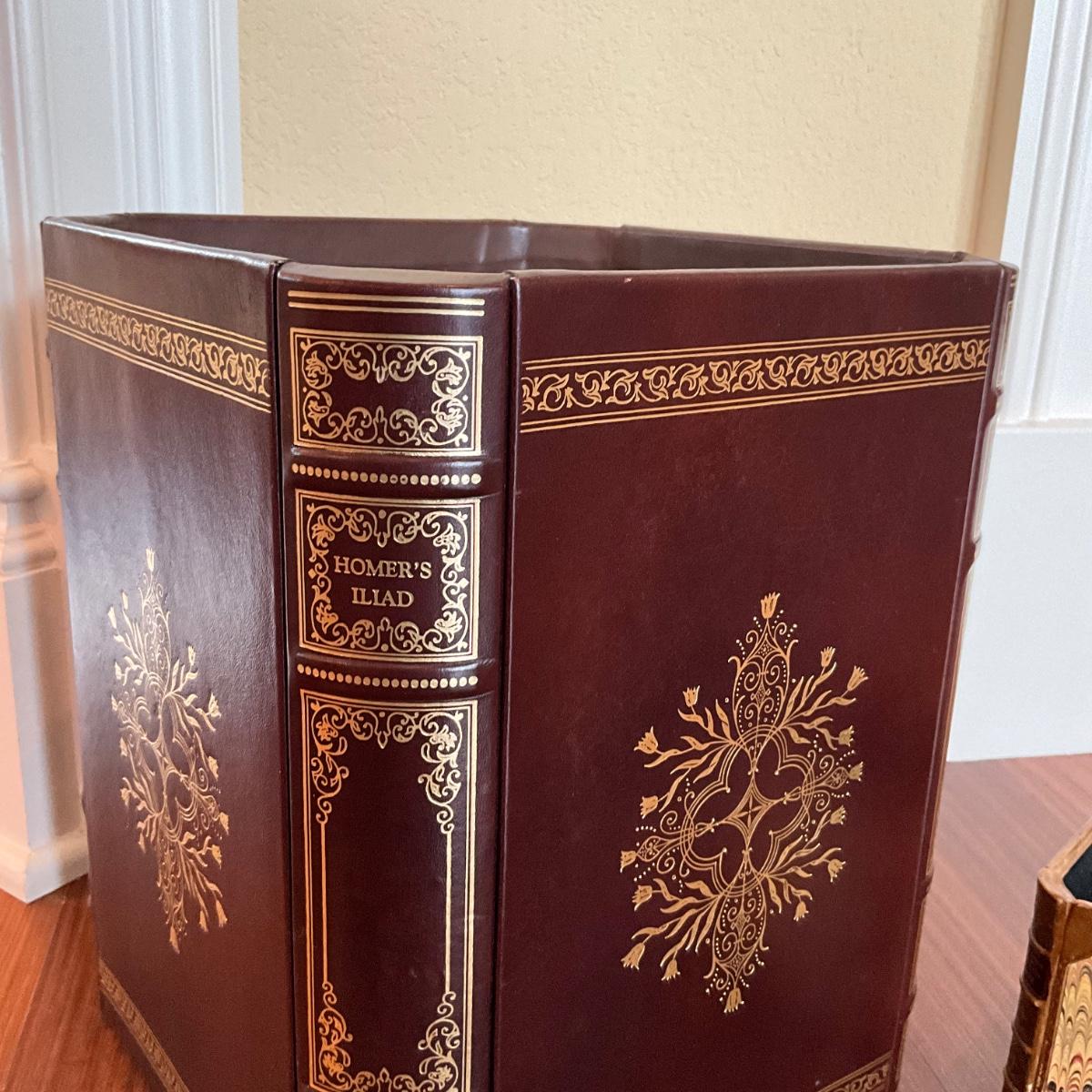 748 Froelich Leather Book Style Waste Can with Dummy Book Co. Pencil Cup
