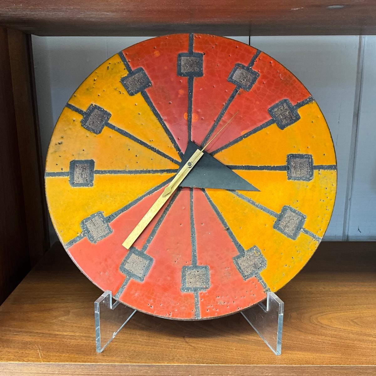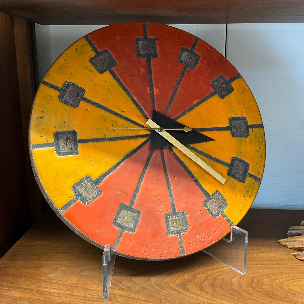 Meridian Italian Modern Ceramic Wall Clock signed by Bitossi for Howard Miller, 1963 studio pottery.