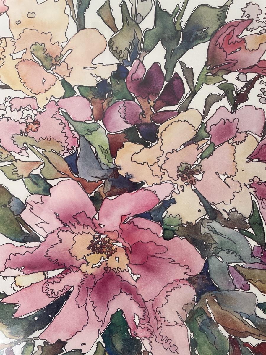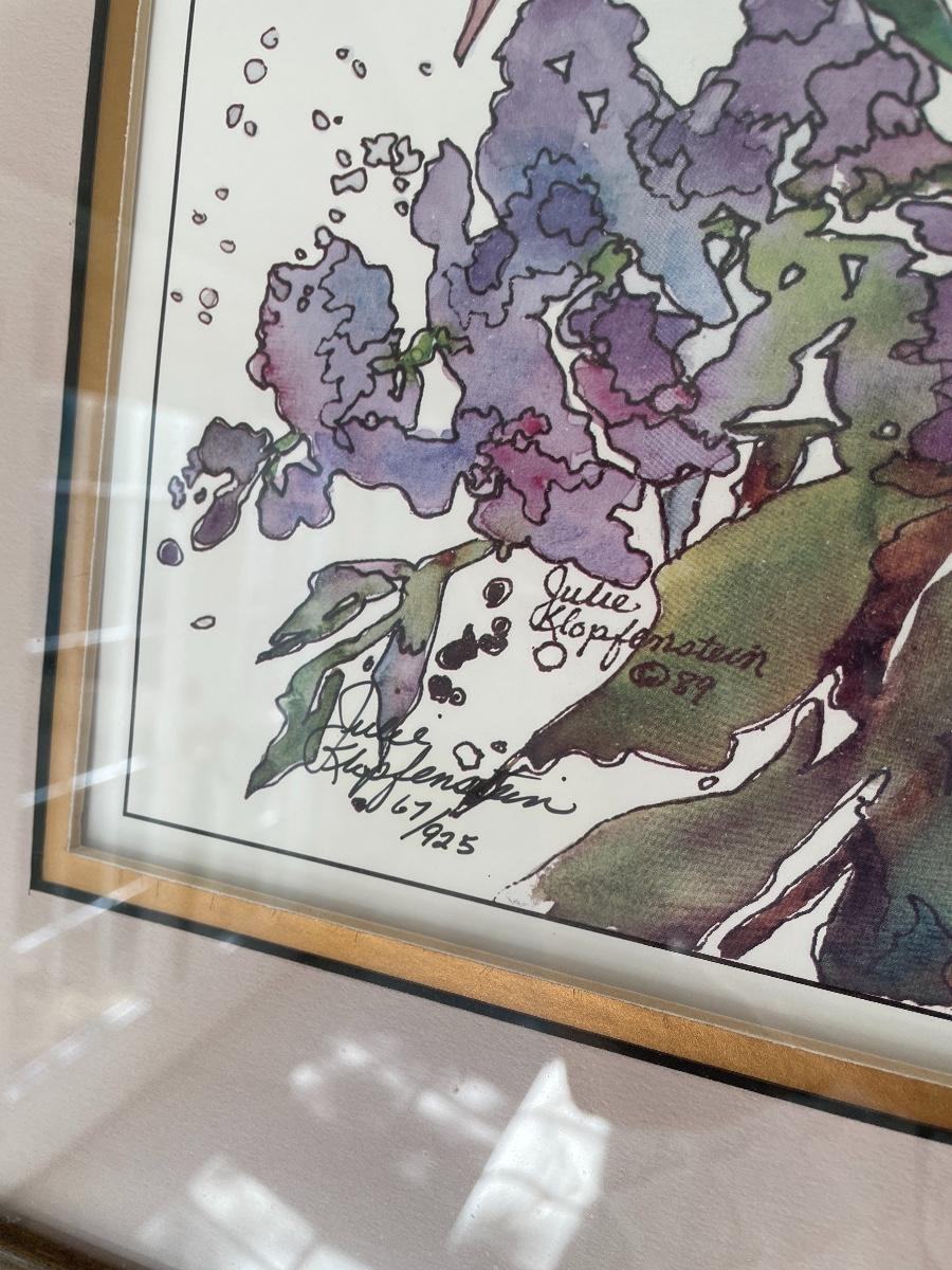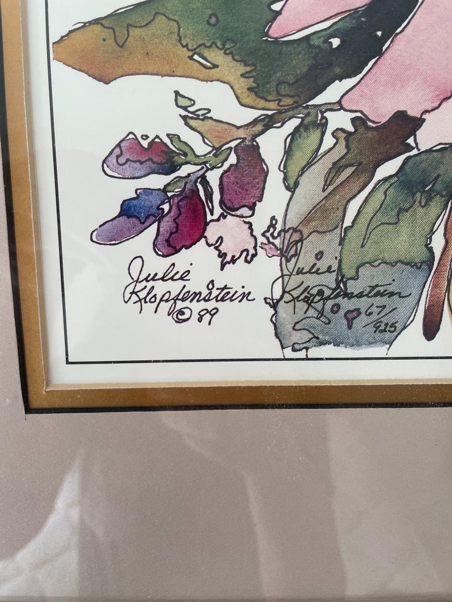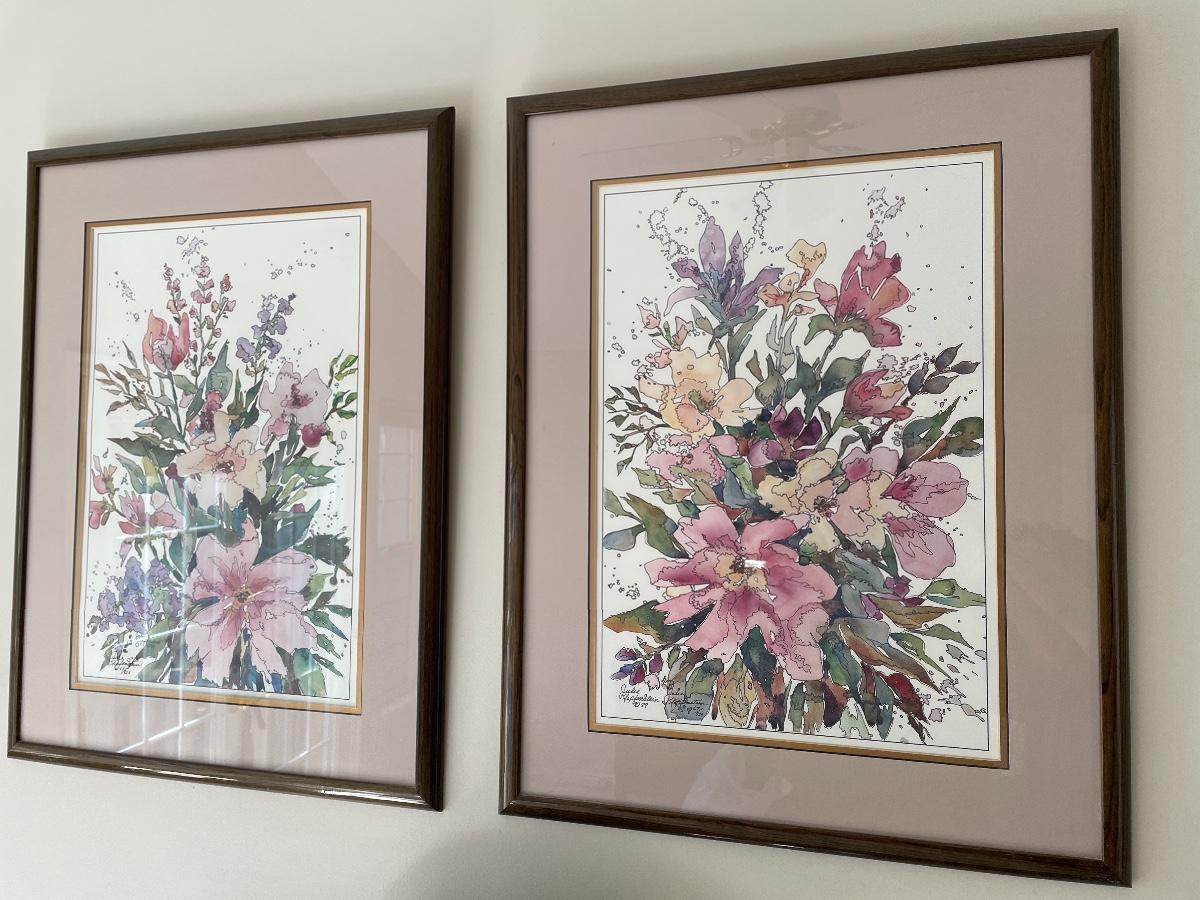 #75 Pair of Framed Watercolor Floral Art Prints 1989 JULIE KLOPFENSTEIN 67/925