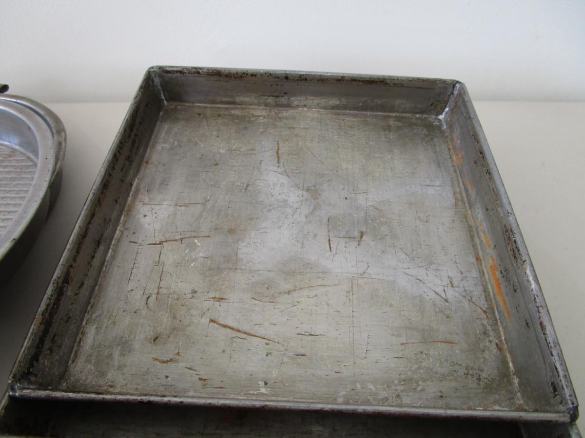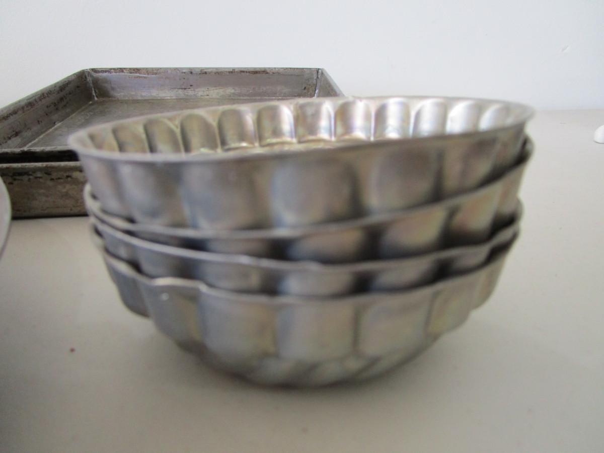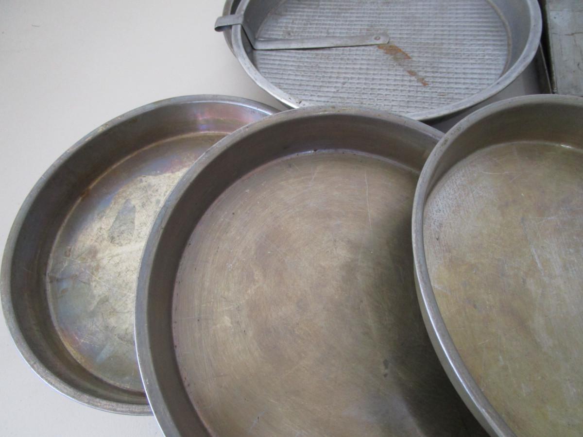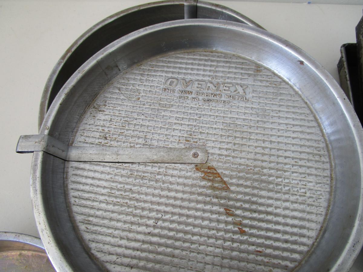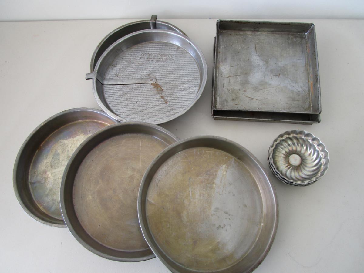 5 - 9" round baking pans, 2- 8" square pans, 4- bunt mini pans 3.5 around