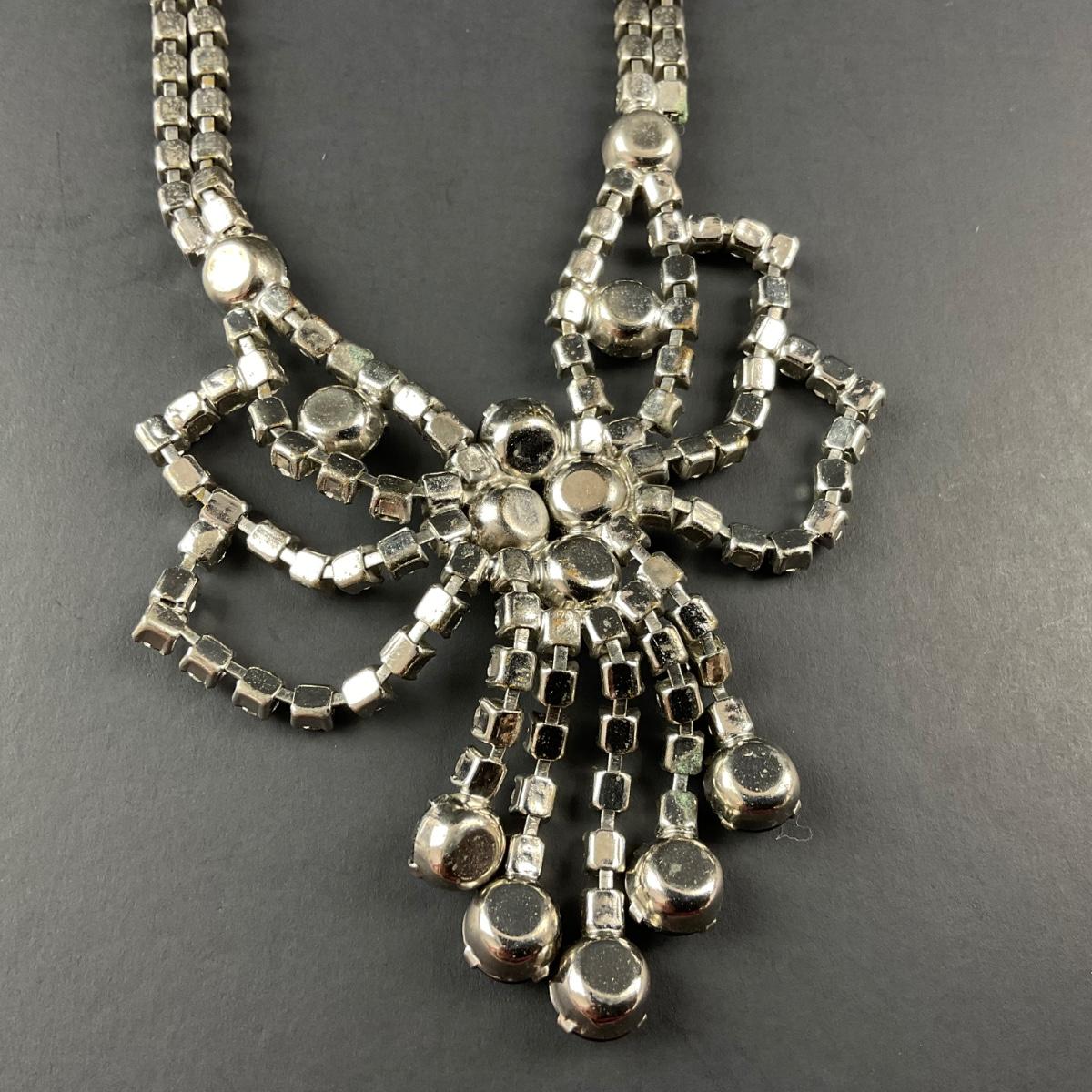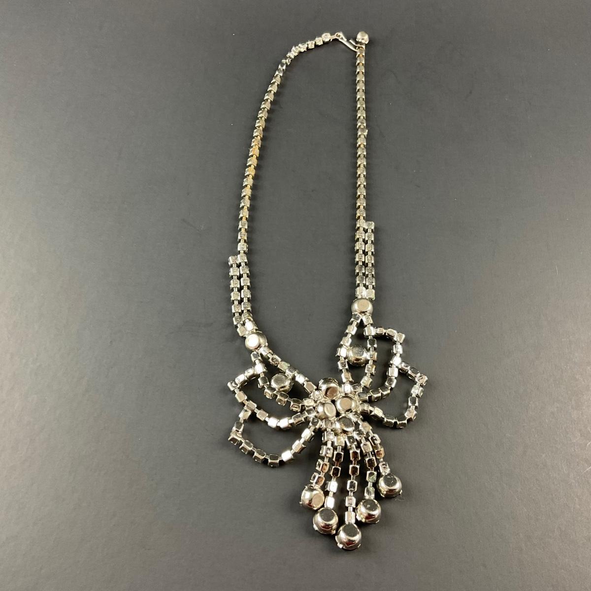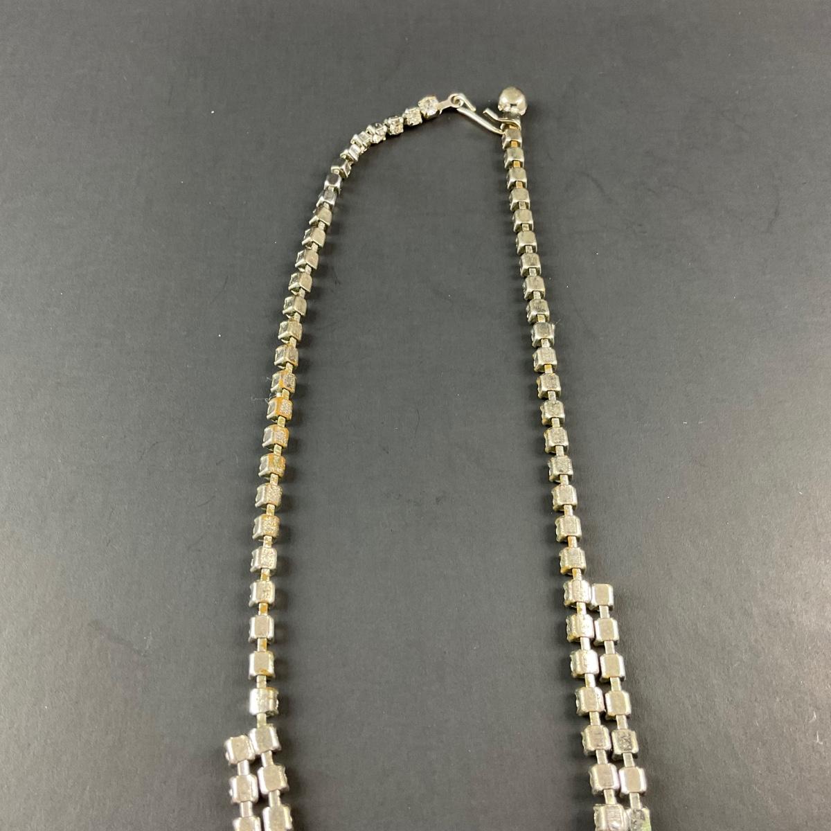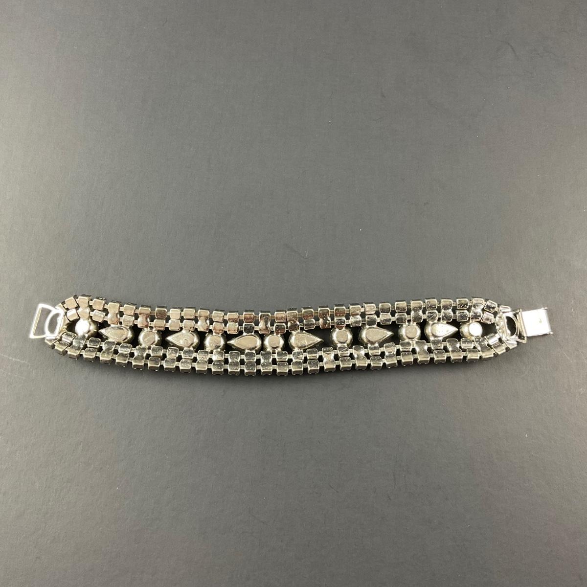 Four pieces of mixed black and rhinestone jewelry including, one rhinestone necklace, clip earrings, and a bracelet. This piece has no damage, and appears to be in great shape with no visable chips, cracks, or broken pieces. Please see photos for details and condition. Any condition statement is given as a courtesy to a client, is an opinion, and should not be treated as a statement of fact. Reference to condition written, oral or within a condition report shall not be regarded as a full account of condition and may not include all defects, alterations, or restorations. Absence of a condition report does not imply a lot is flawless or lacking imperfections or damage. Katherine’s Auction & Appraisal Service shall have no responsibility for any error or omission. Returns shall not be accepted on the basis of condition. ::: Shipping is available on this lot. If you require shipping you must let us know at the close of the auction. We will coordinate with you after the item has been won. Shipping fees will include insurance up to or exceeding the value of all items being mailed. If you have any questions regarding this lot please contact the auctioneer either via this website, by direct email or by phone. PICK UP TIMES and other important information can be found in the TERMS and DESCRIPTION of the auction. Please take a look for pertinent information. Thanks!