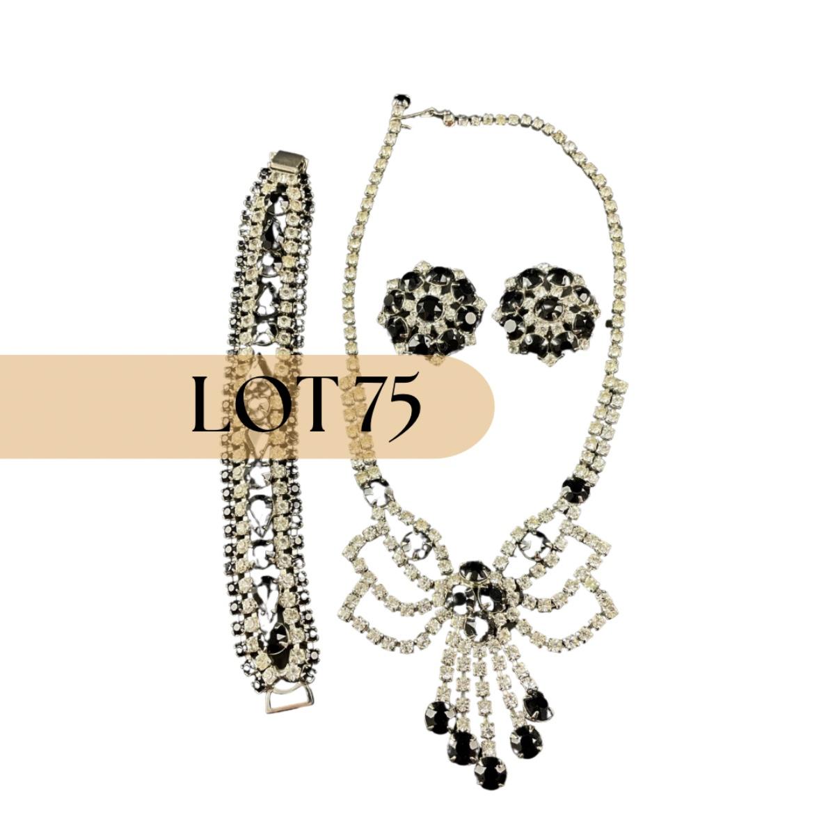 -75- COSTUME | Mixed Lot Of Black & Rhinestone Jewelry