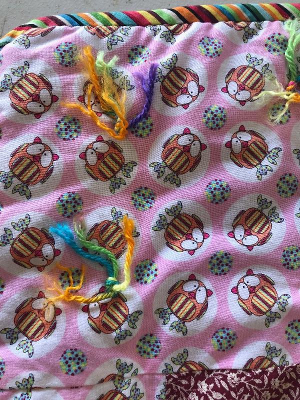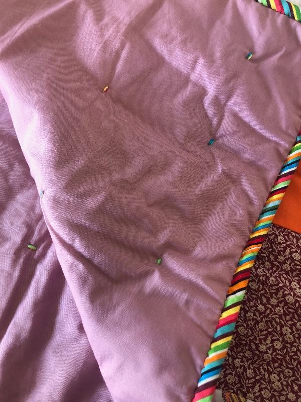 Quit measures 48x42.æThin light weight. Fun pattern blocks solid mauve back. This is an ONSITE Auction all items will need to be picked up on location. Please see auction description for pick up procedures.