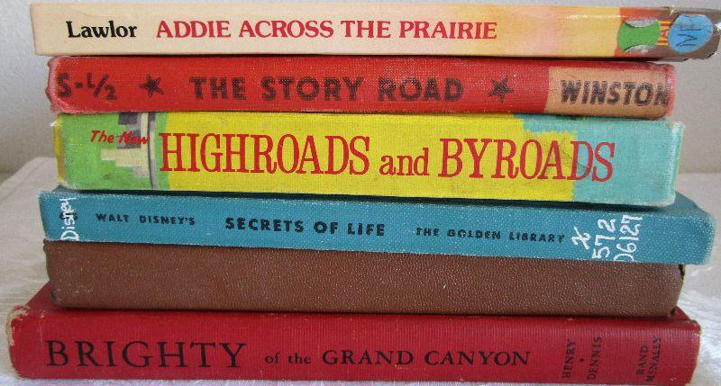 Six Books- Addie Acress the Prairie 1986; The New Highroads and Byroads 1961; The Story Road 1951; Walt Disney's Secrets of Life 1957; Roads to Everywhere 1961; Brighty of the Grand Canyon 1965; Some were library books