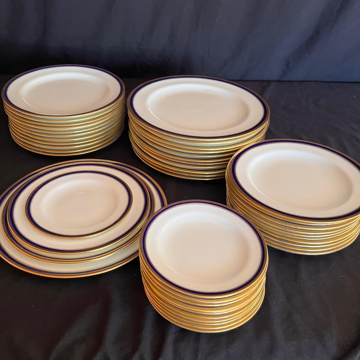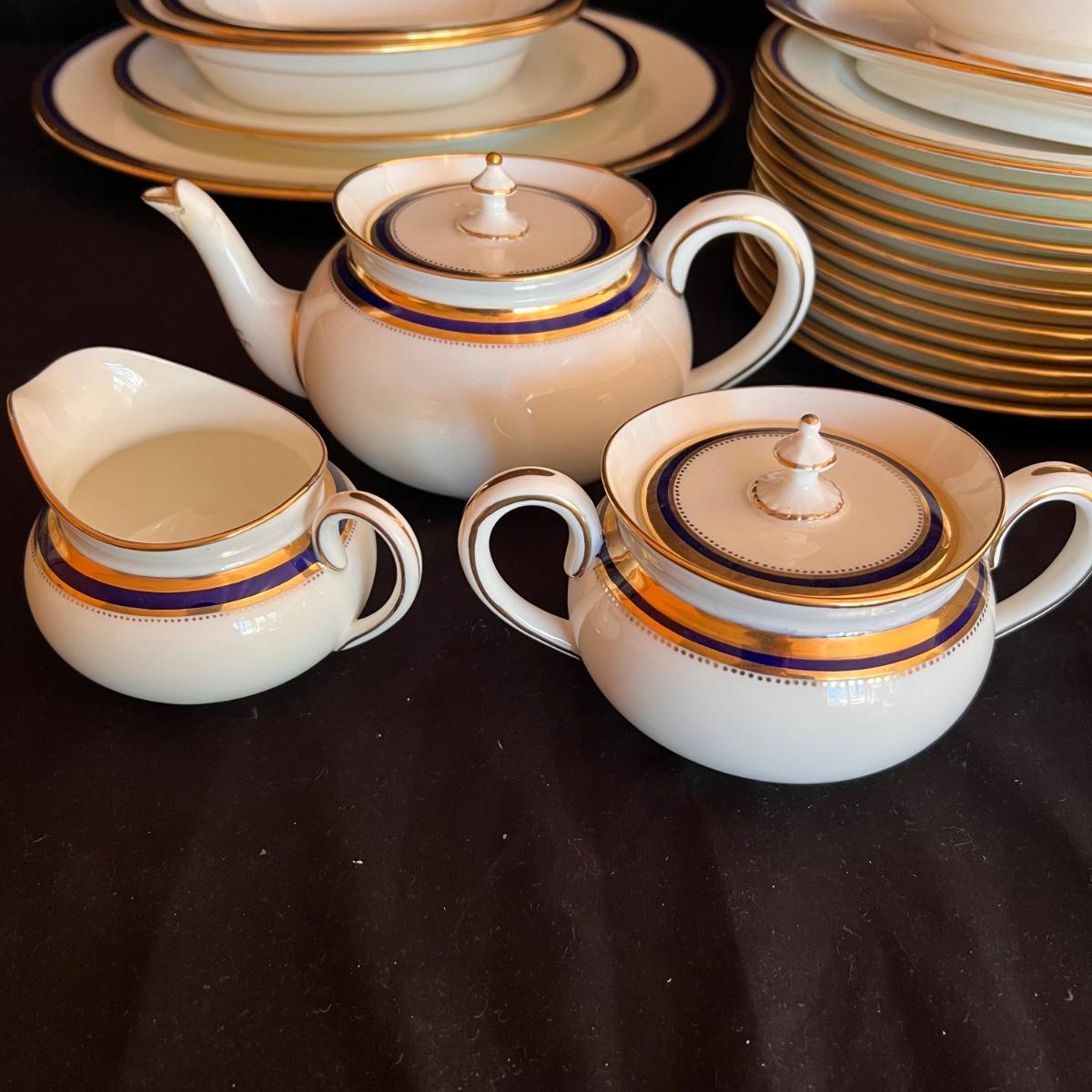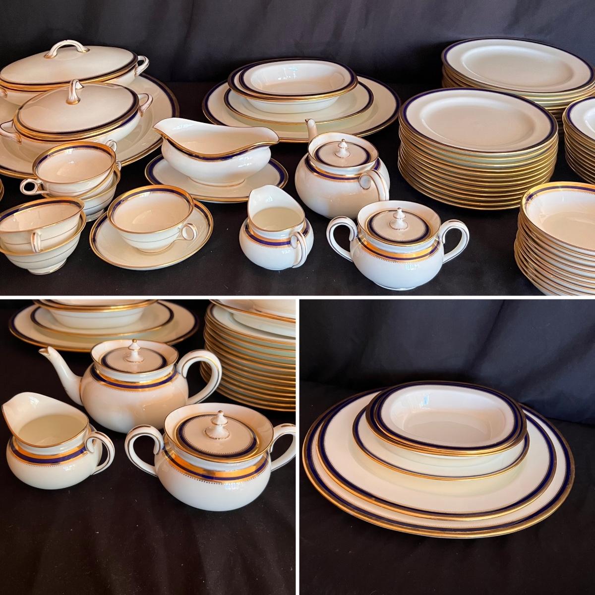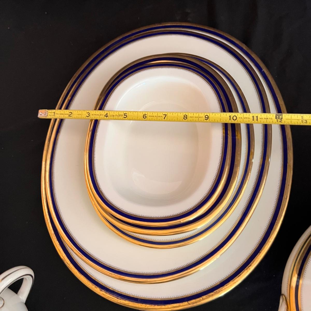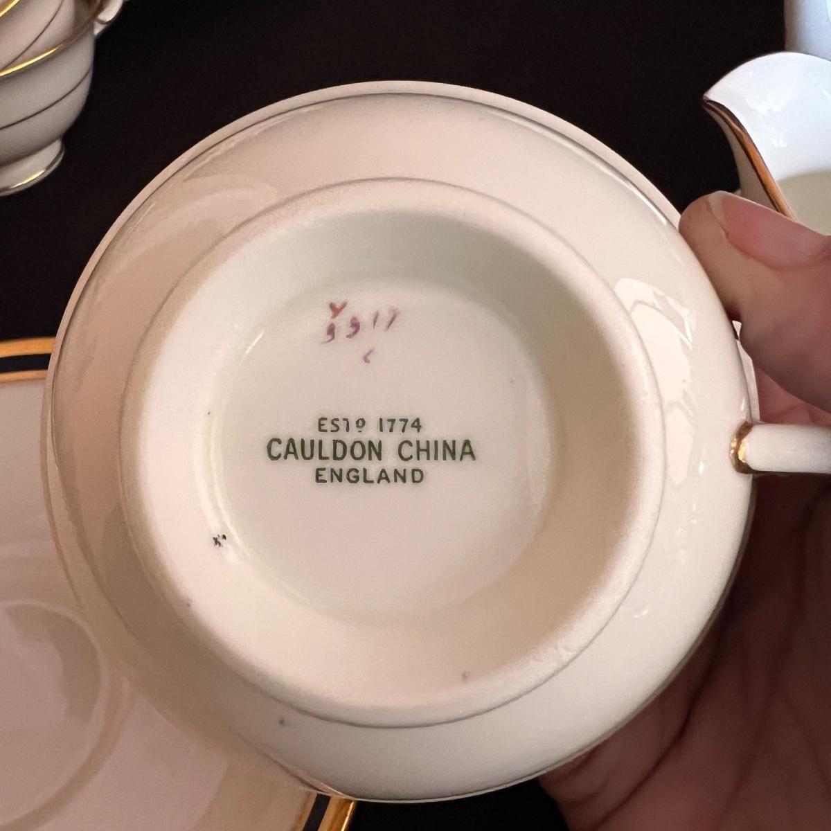 This large set of Cauldon china has been lovingly cared for with each piece wrapped in protective foam. See pictures for measurements. Not quite a 12 person setting as only 11 of the two smaller sized plates and dishes and 8 cups with 9 saucers (1 saucer is chipped. Lot also includes teapot, creamer, sugar bowl, tureen’s and platters.