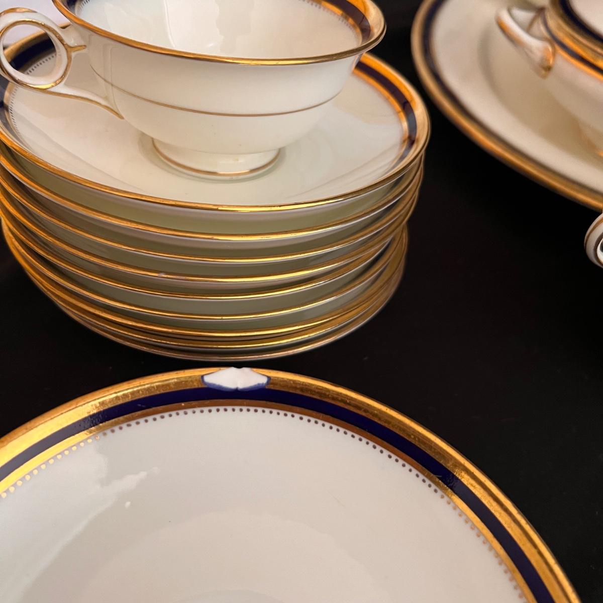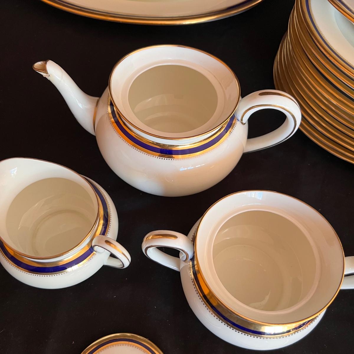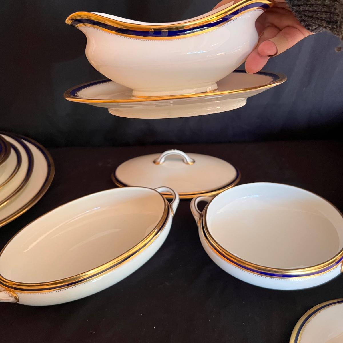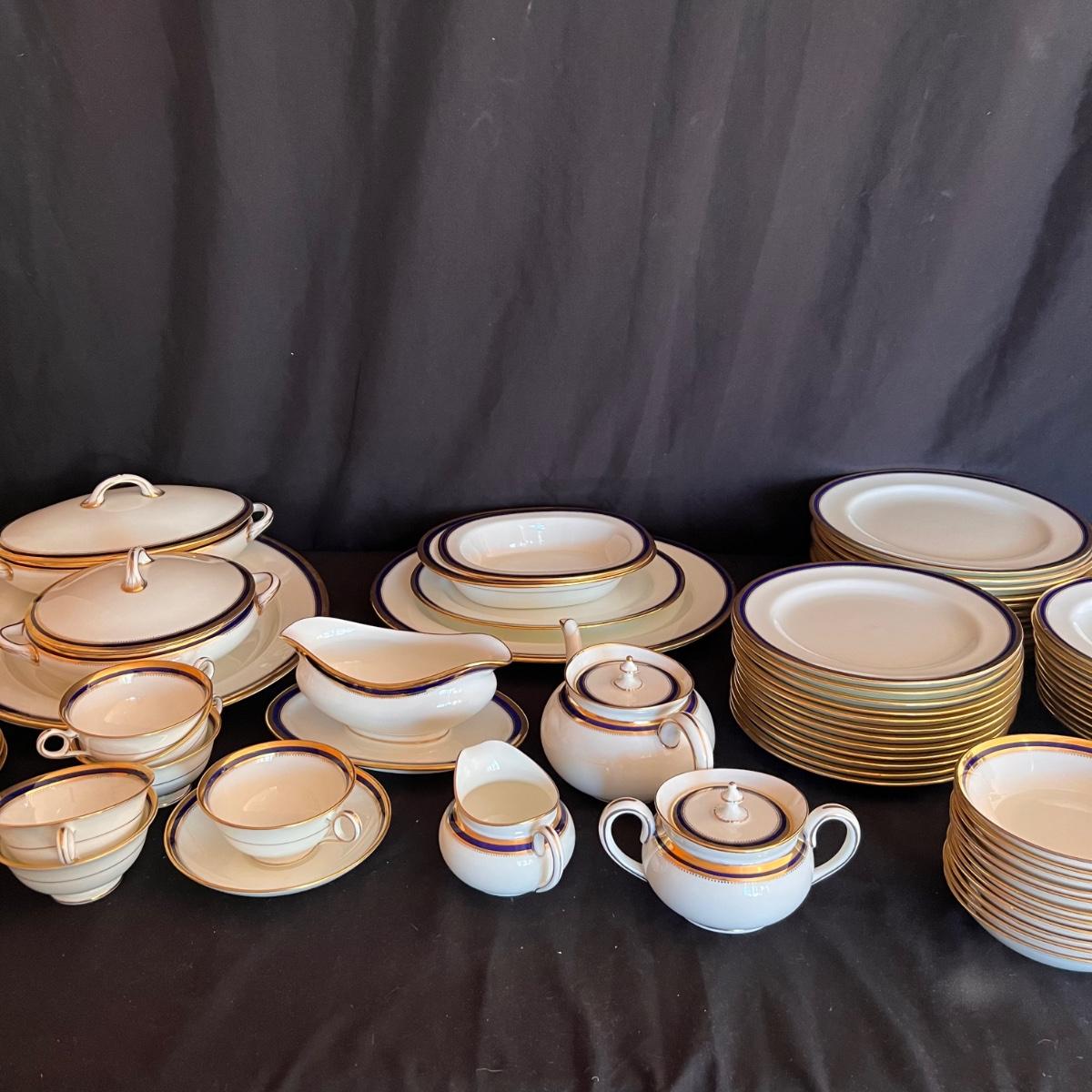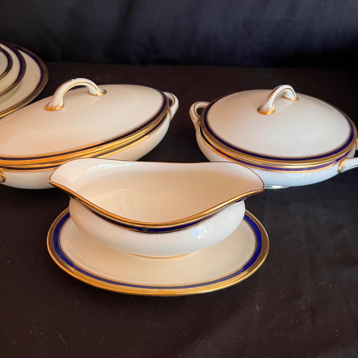 This large set of Cauldon china has been lovingly cared for with each piece wrapped in protective foam. See pictures for measurements. Not quite a 12 person setting as only 11 of the two smaller sized plates and dishes and 8 cups with 9 saucers (1 saucer is chipped. Lot also includes teapot, creamer, sugar bowl, tureen’s and platters.