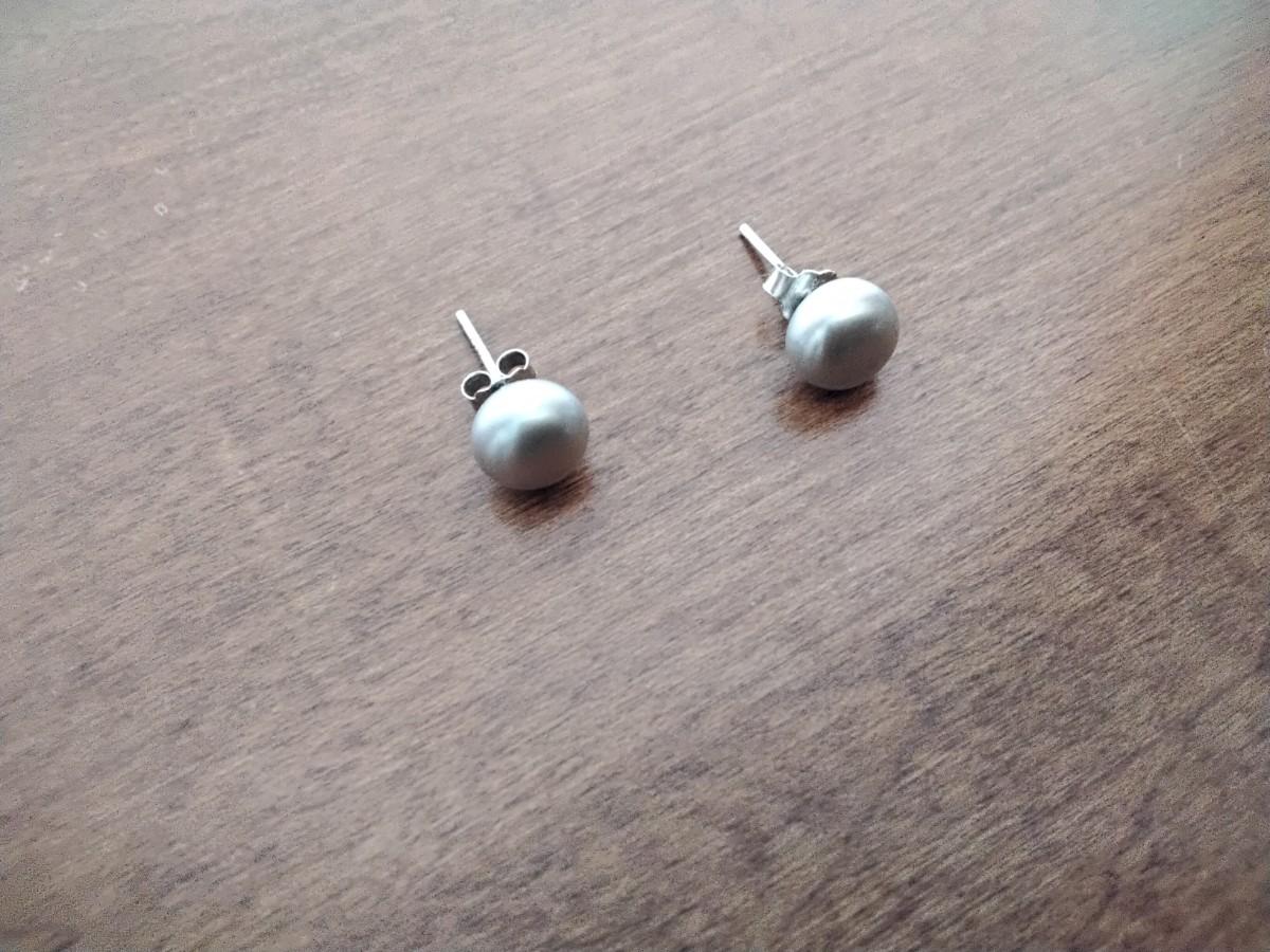 7.5 Silver Button Pearls on Sterling Silver Stud backs