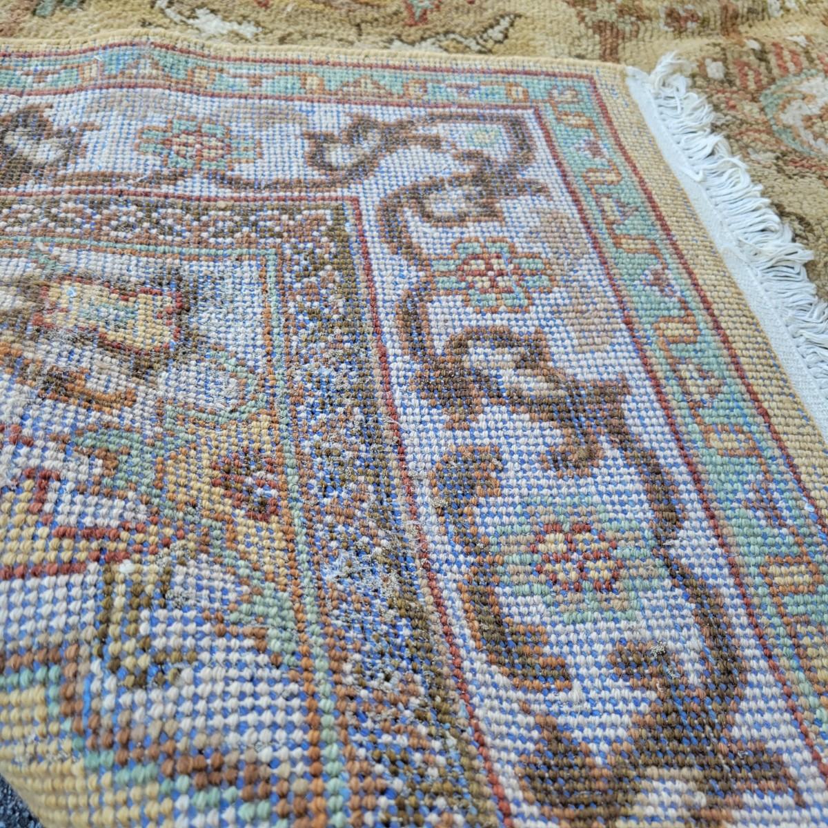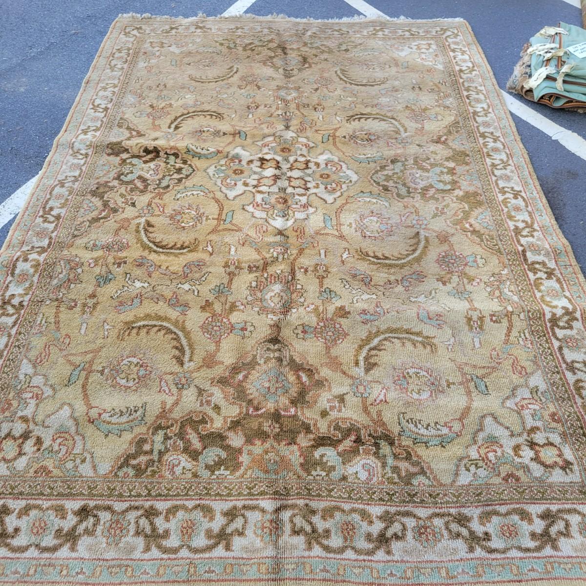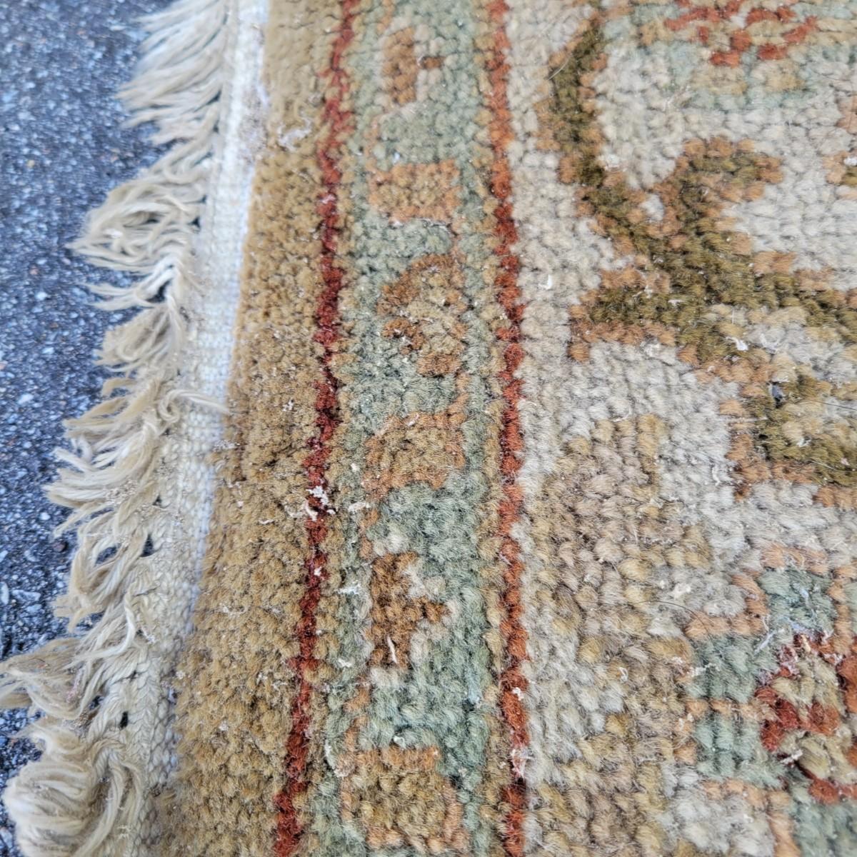 Large area rug in good condition, it is darker on one side than the other, but has no notable stains. Muted colors with chevrons. Measures approximately 75" x 114" Local pickup only