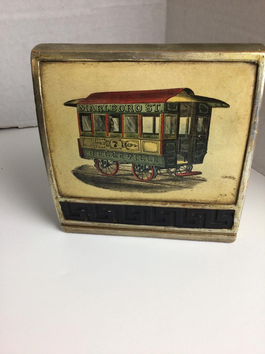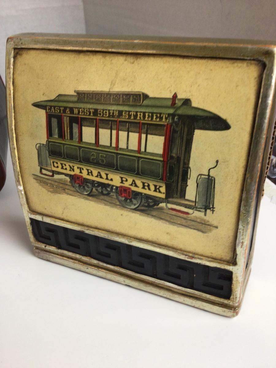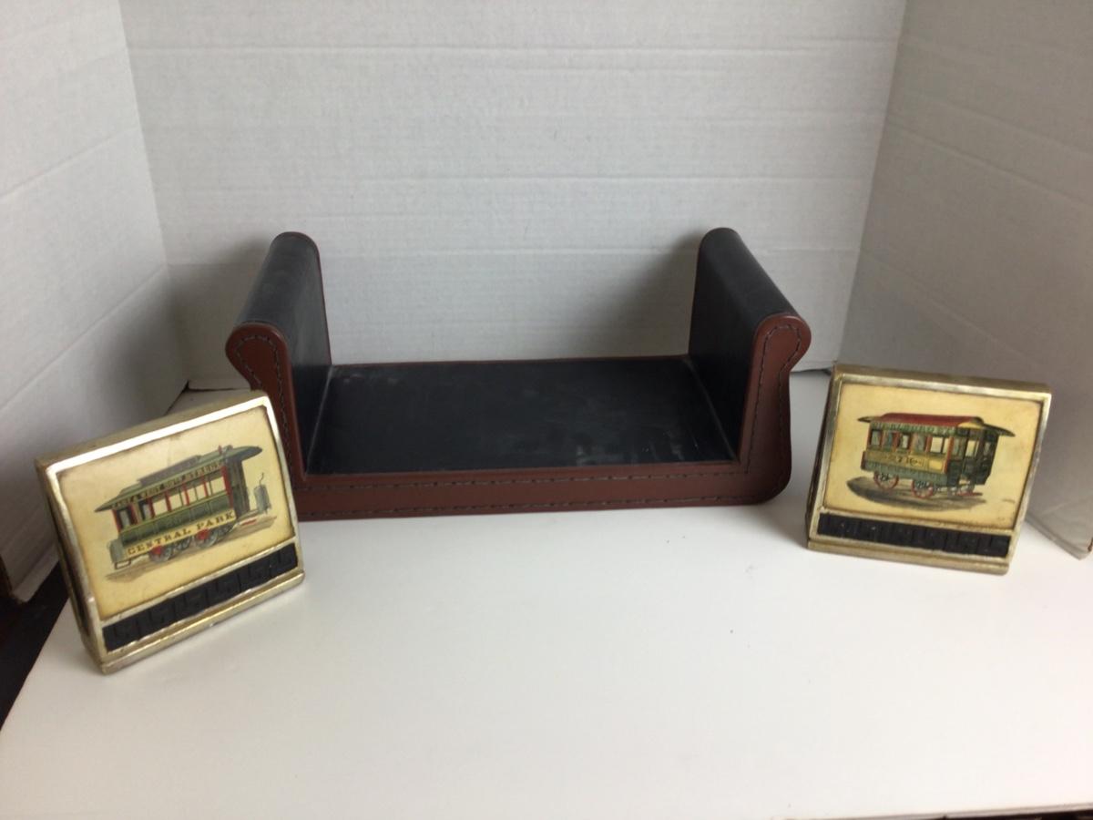 752 Borghese Trolly Car Bookends and Leather covered shelf