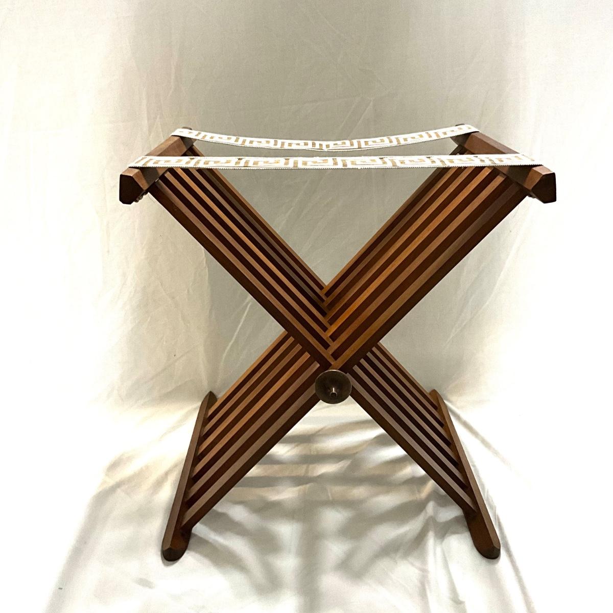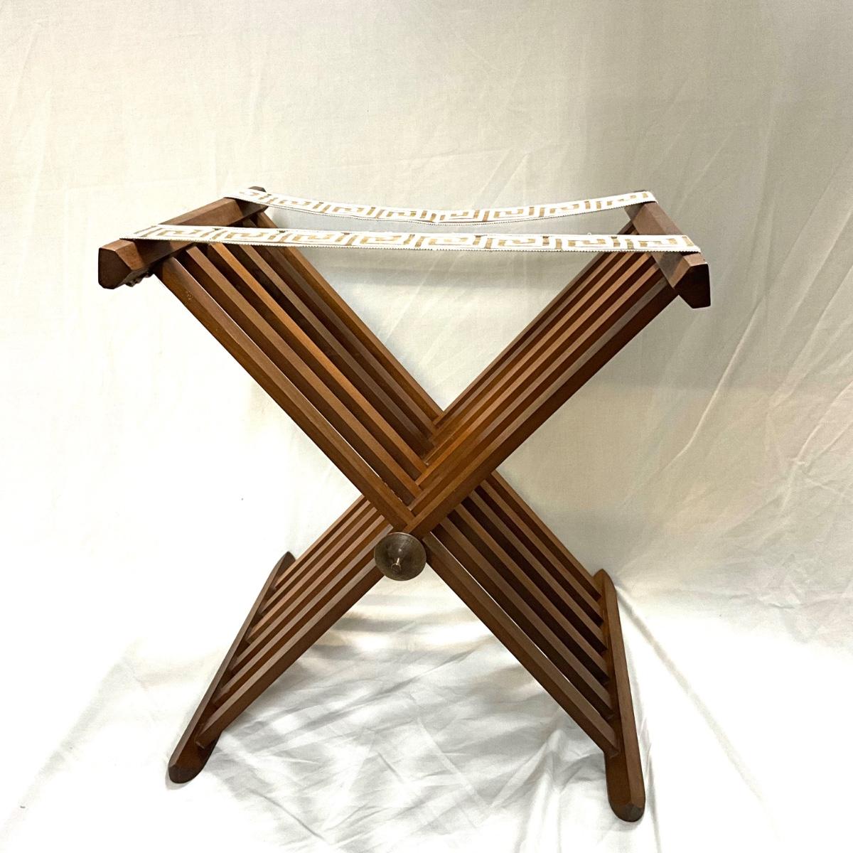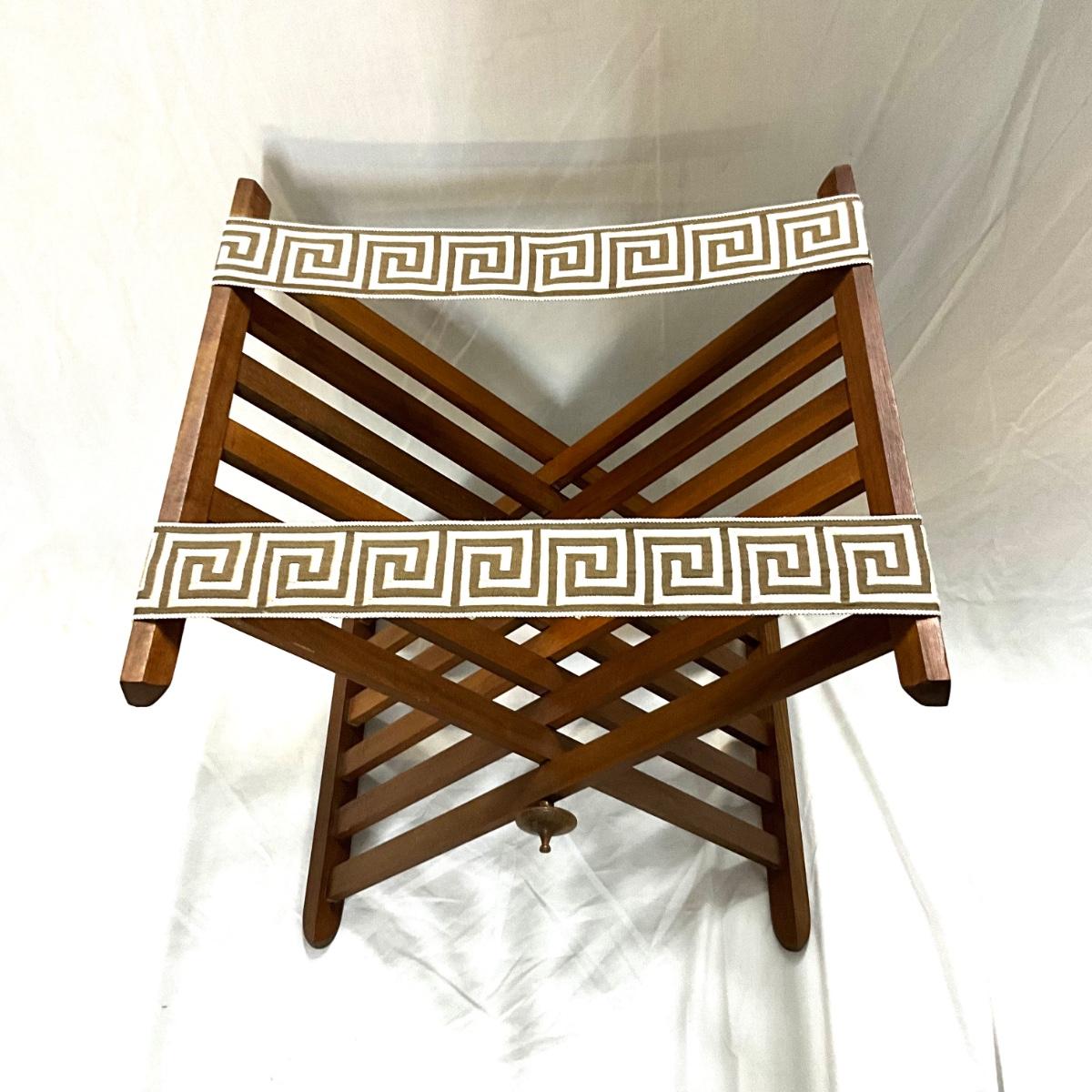 752 Vintage Maple Wood Luggage Rack with Greek Key Straps