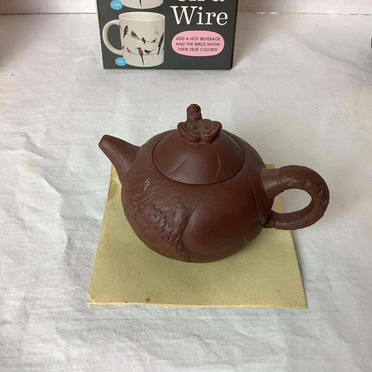 752 Vintage Revere Copper Tea Kettle with Birds on a wire Mug, Japanese Green Tea Pot