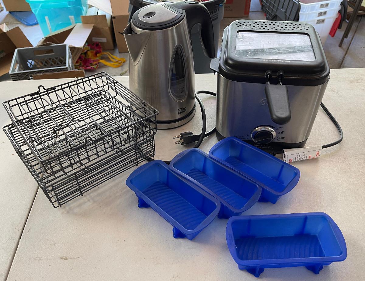 #757G Kitchen items: Fryer, Coffee Pot, Tea Pot