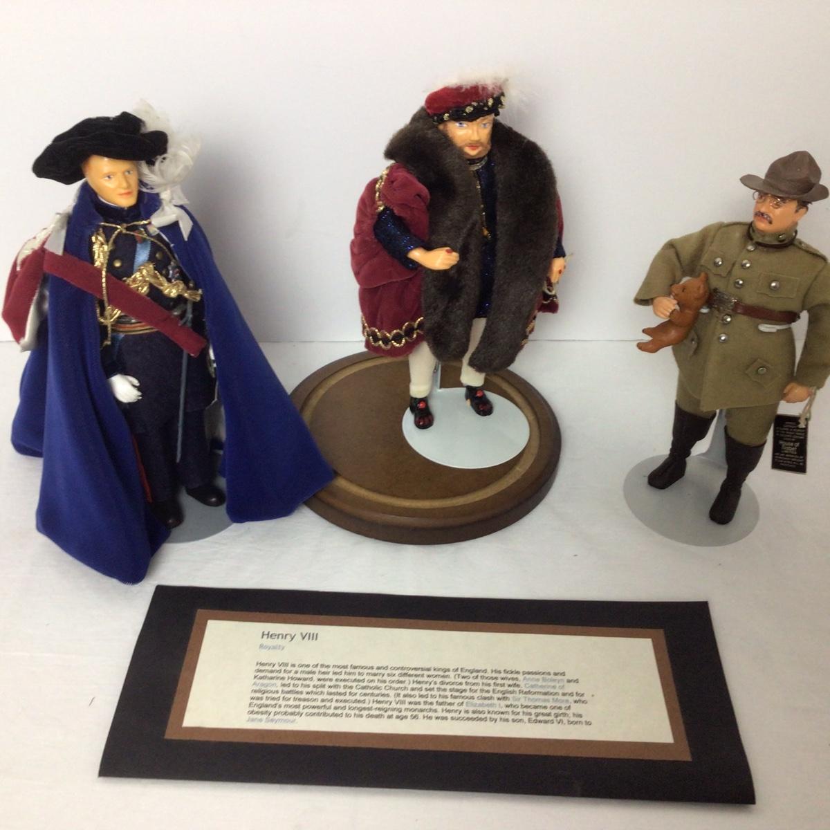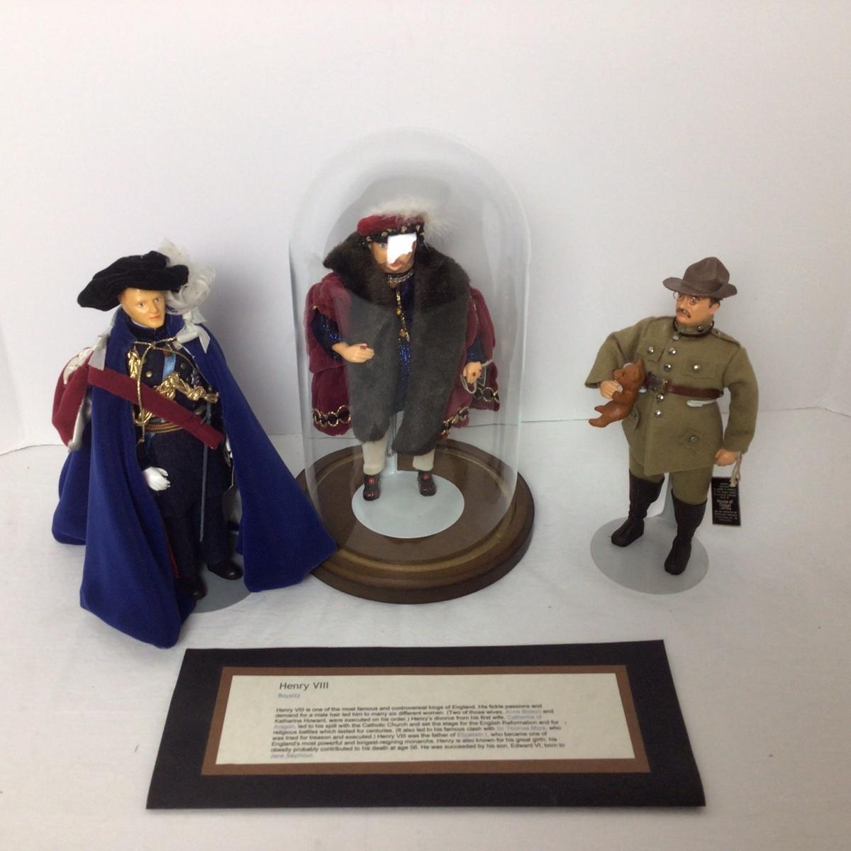 Lot contains 3 dolls-Henry VIII, Teddy Roosevelt and Price Phillip.