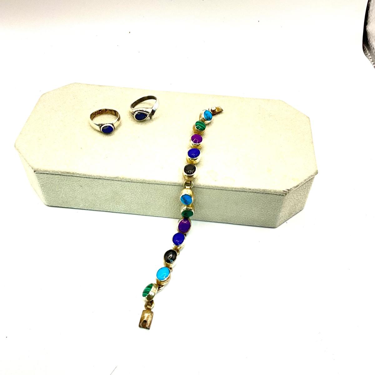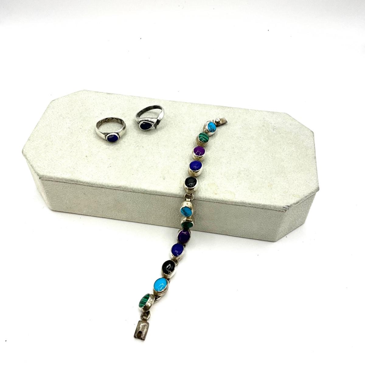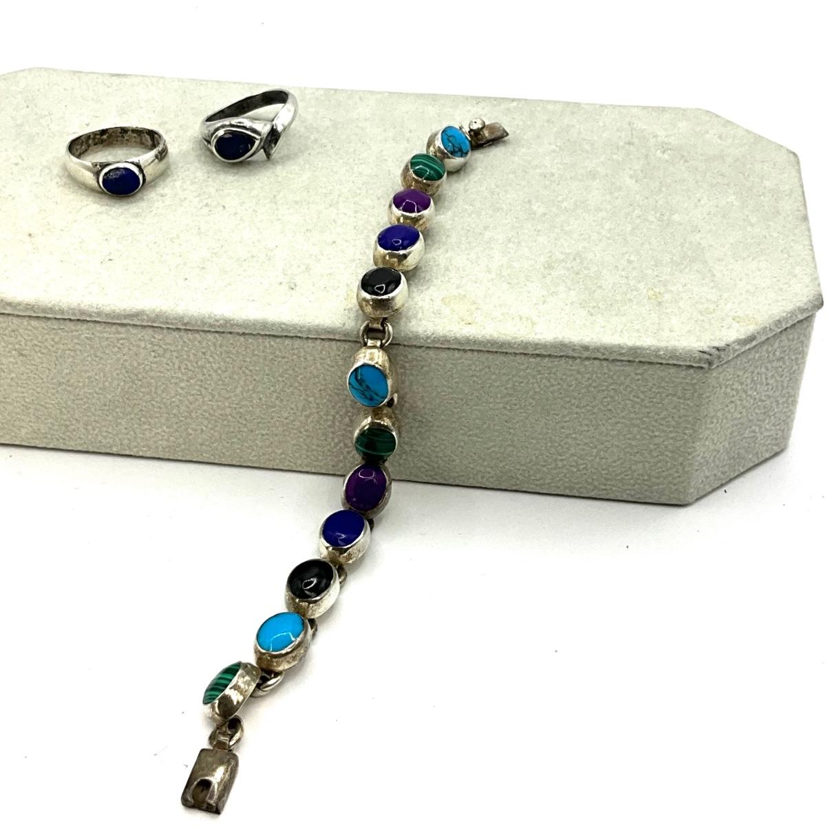 759 Sterling Multi Stone Bracelet with Two Lapis Rings