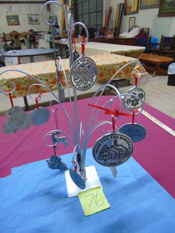 76 Metal tree with 14 pewter ornaments (only a sample shown)