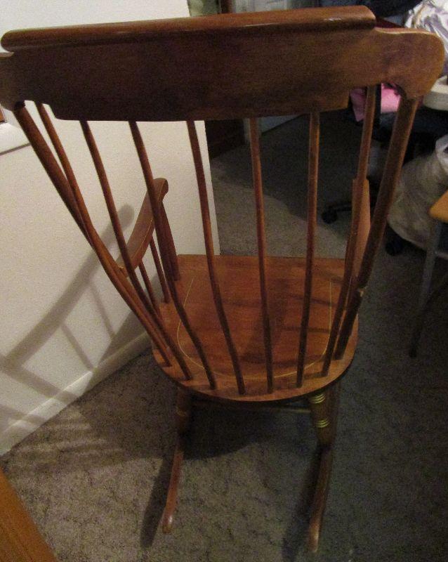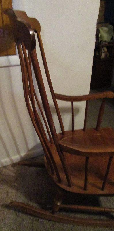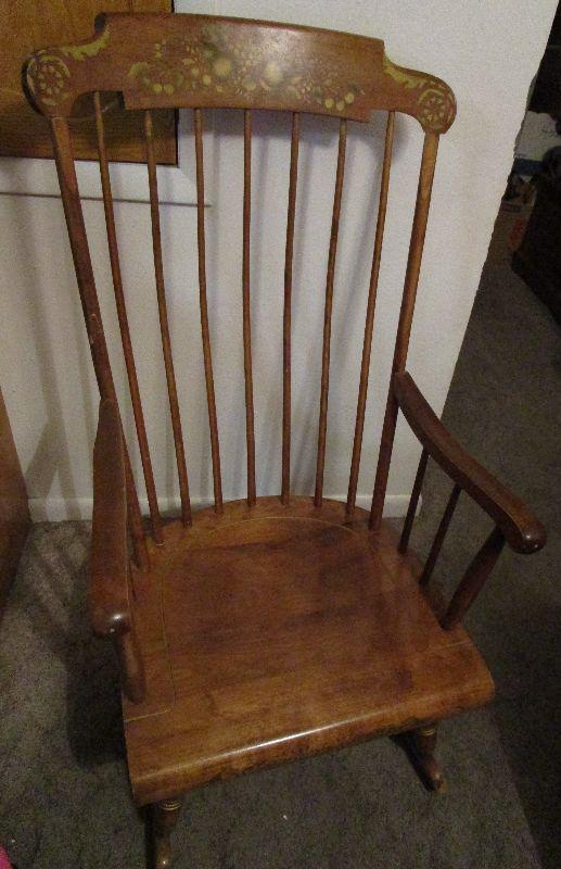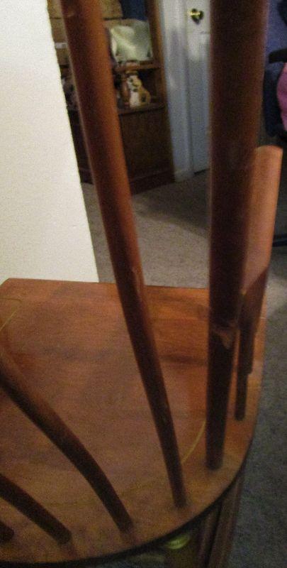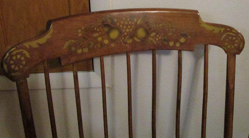 Worn and Repaired, good quality chair, in good working condition. Could be refinished back to it's glory days.