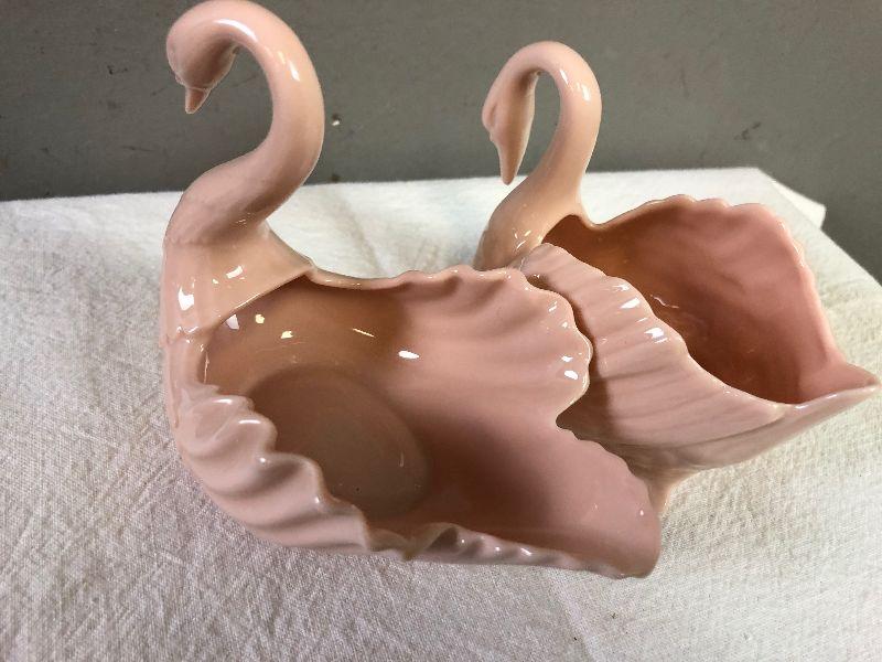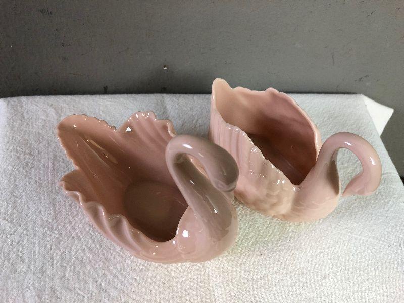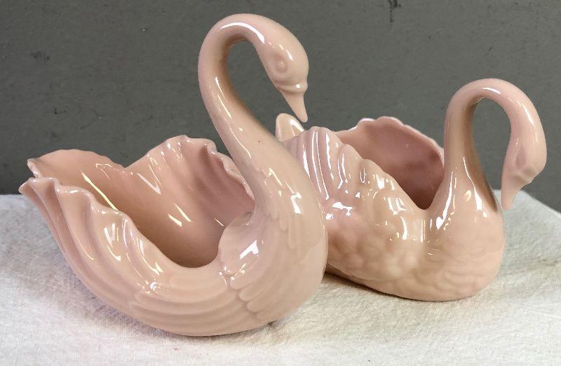 #76 Pink Lenox Swans - pair (blue Back stamp)