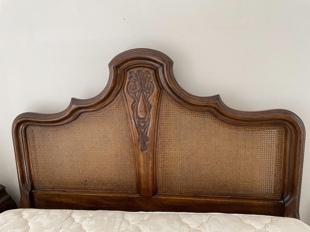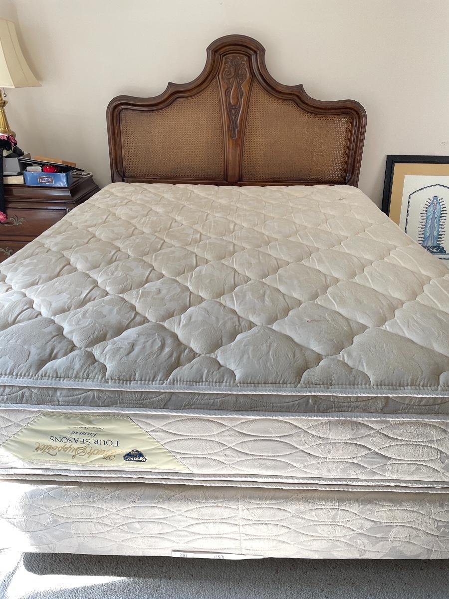 #76 Queen Mattress Box Spring & Vintage Cane Headboard