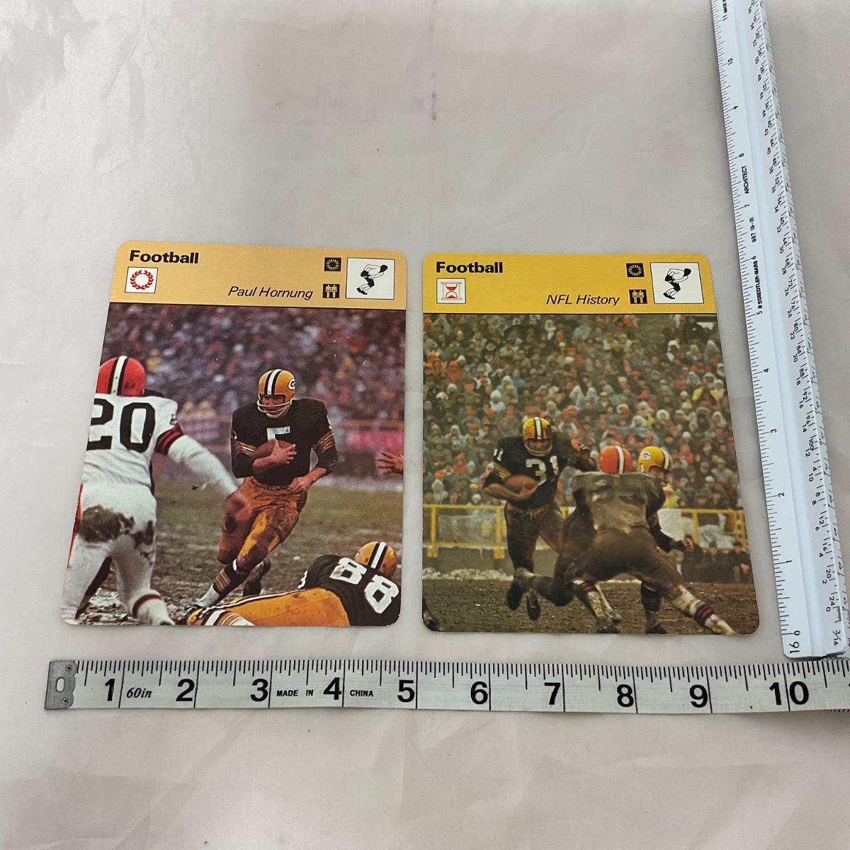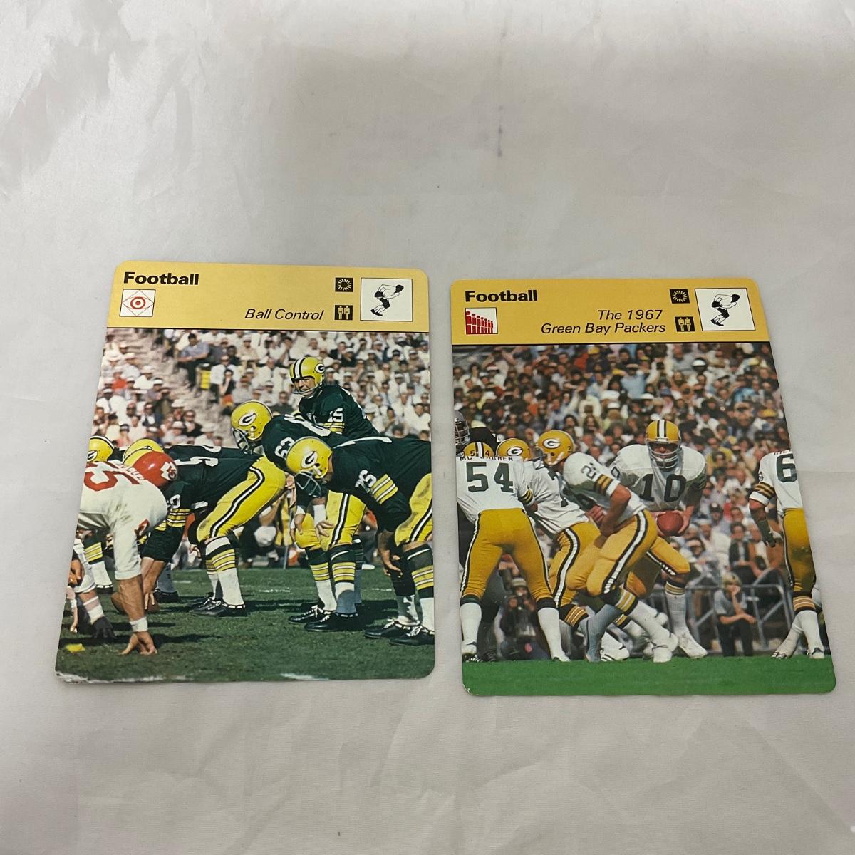 Group of vintage Green Bay Packers cards. Please see photos for details and condition. ::: Shipping is available on this lot. If you require shipping you must let us know at the close of the auction. We will coordinate with you after the item has been won. Shipping fees will include insurance up to or exceeding the value of all items being mailed. If you have any questions regarding this lot please contact the auctioneer either via this website, by direct email or by phone. PICK UP TIMES and other important information can be found in the TERMS and DESCRIPTION of the auction. Please take a look for pertinent information. Thanks!