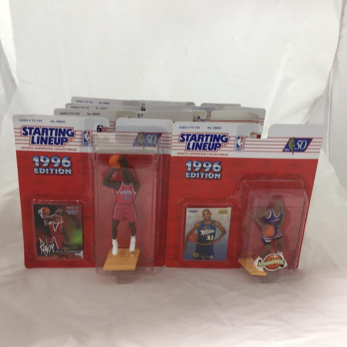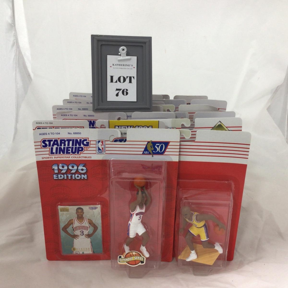12 Starting Lineup Basketball figures. Please see photos for details and condition. ::: Shipping is available on this lot. If you require shipping you must let us know at the close of the auction. We will coordinate with you after the item has been won. Shipping fees will include insurance up to or exceeding the value of all items being mailed. If you have any questions regarding this lot please contact the auctioneer either via this website, by direct email or by phone. PICK UP TIMES and other important information can be found in the TERMS and DESCRIPTION of the auction. Please take a look for pertinent information. Thanks!
