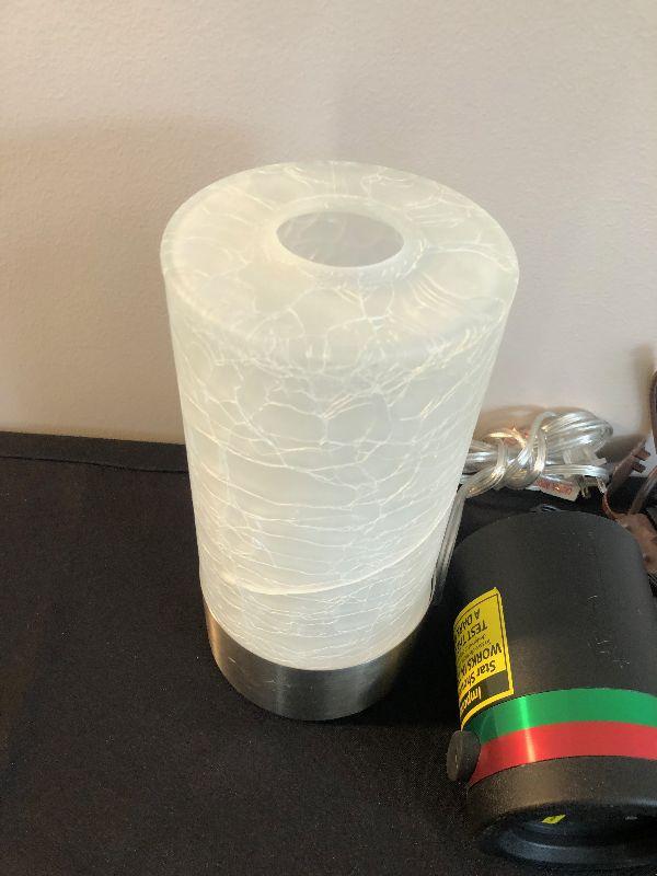 Shar Shower Only works in the dark . Shade is Cracked!!!   This is an ONSITE Auction all items will need to be picked up on location. Please see auction description for pick up procedures. Shipping is available on smaller items.
