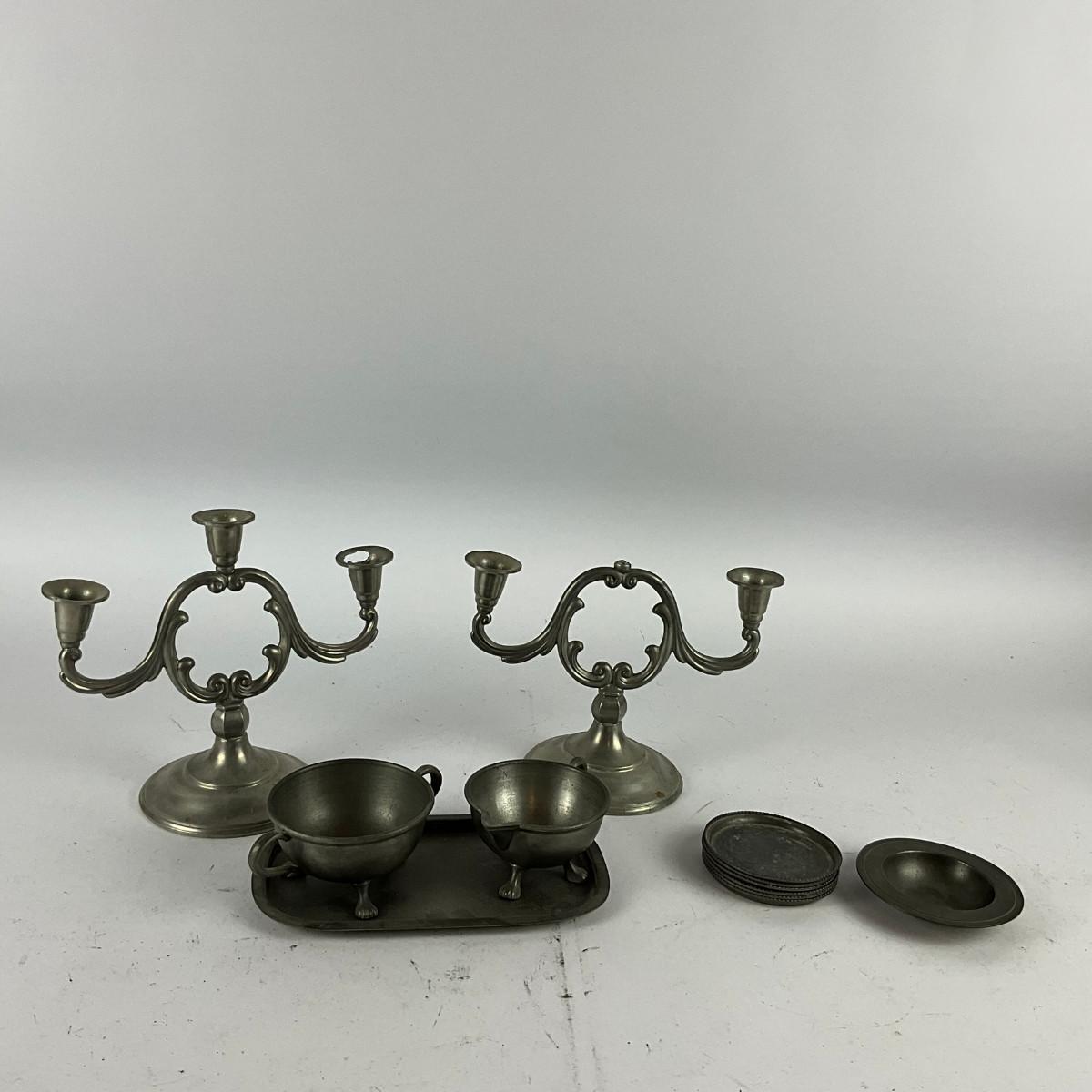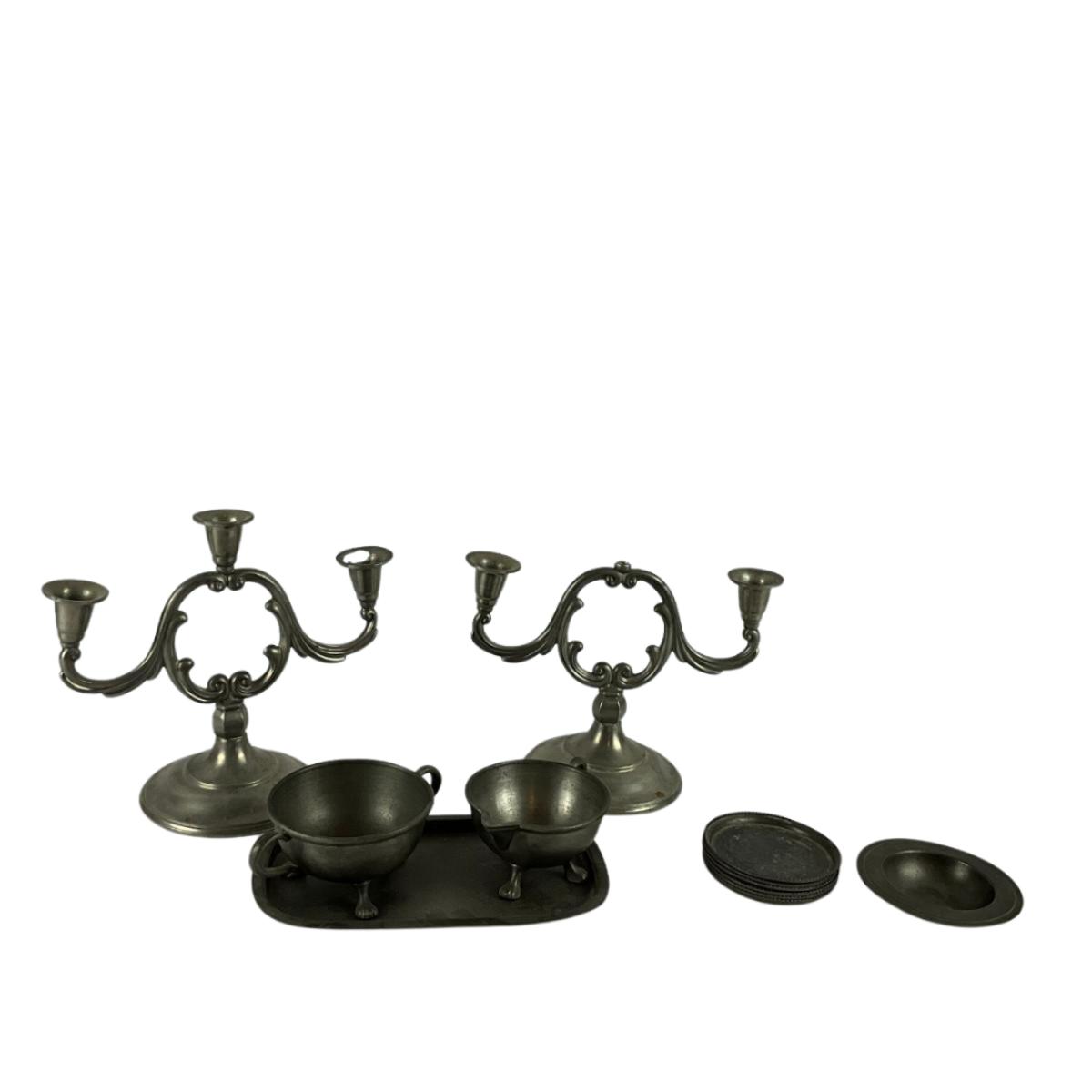 763 Sventz Tenn Cream & Sugar Bowls With Candle Stick Holders With Six Small Plates