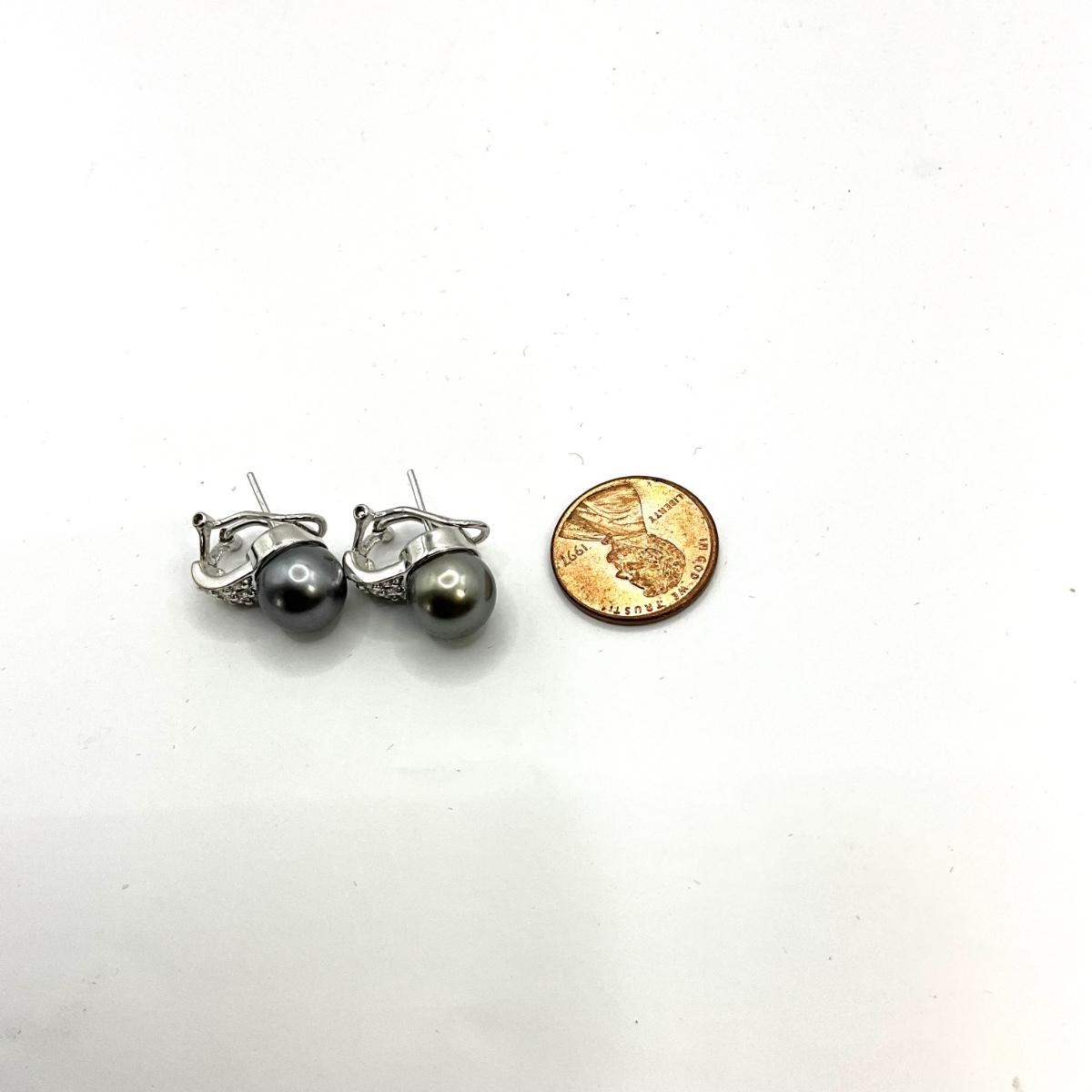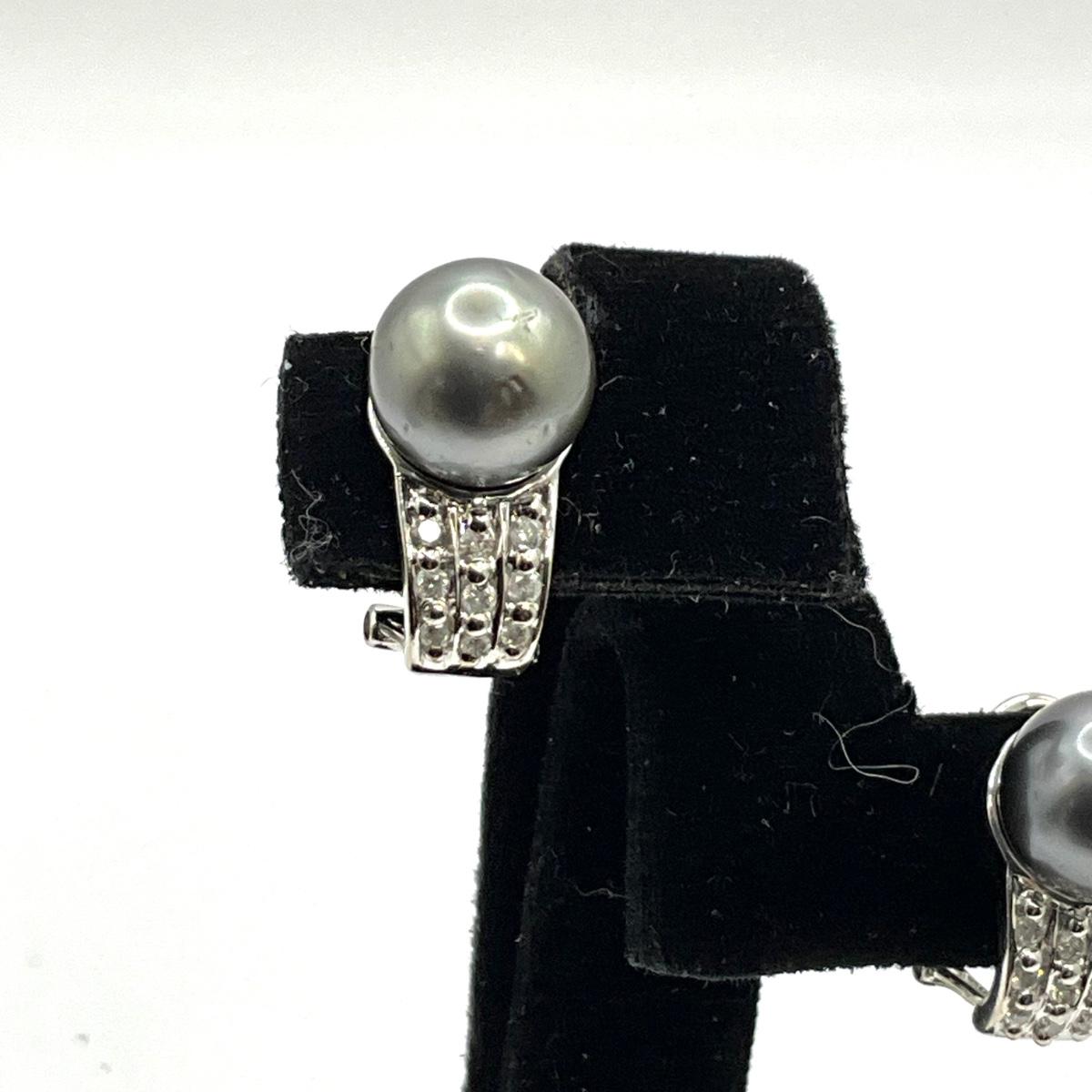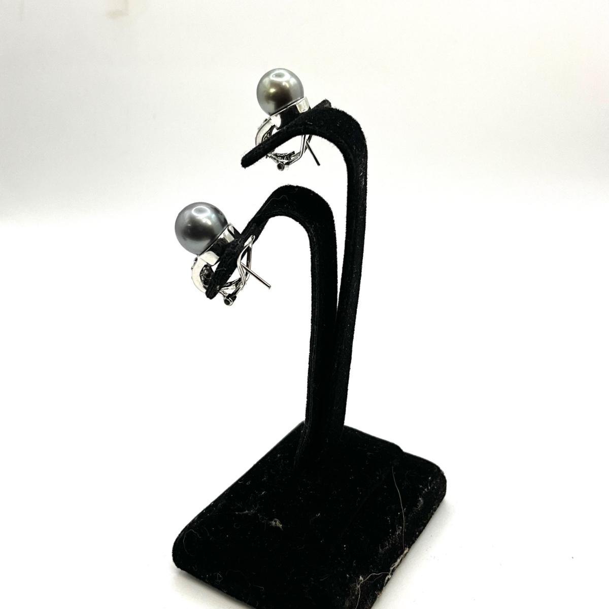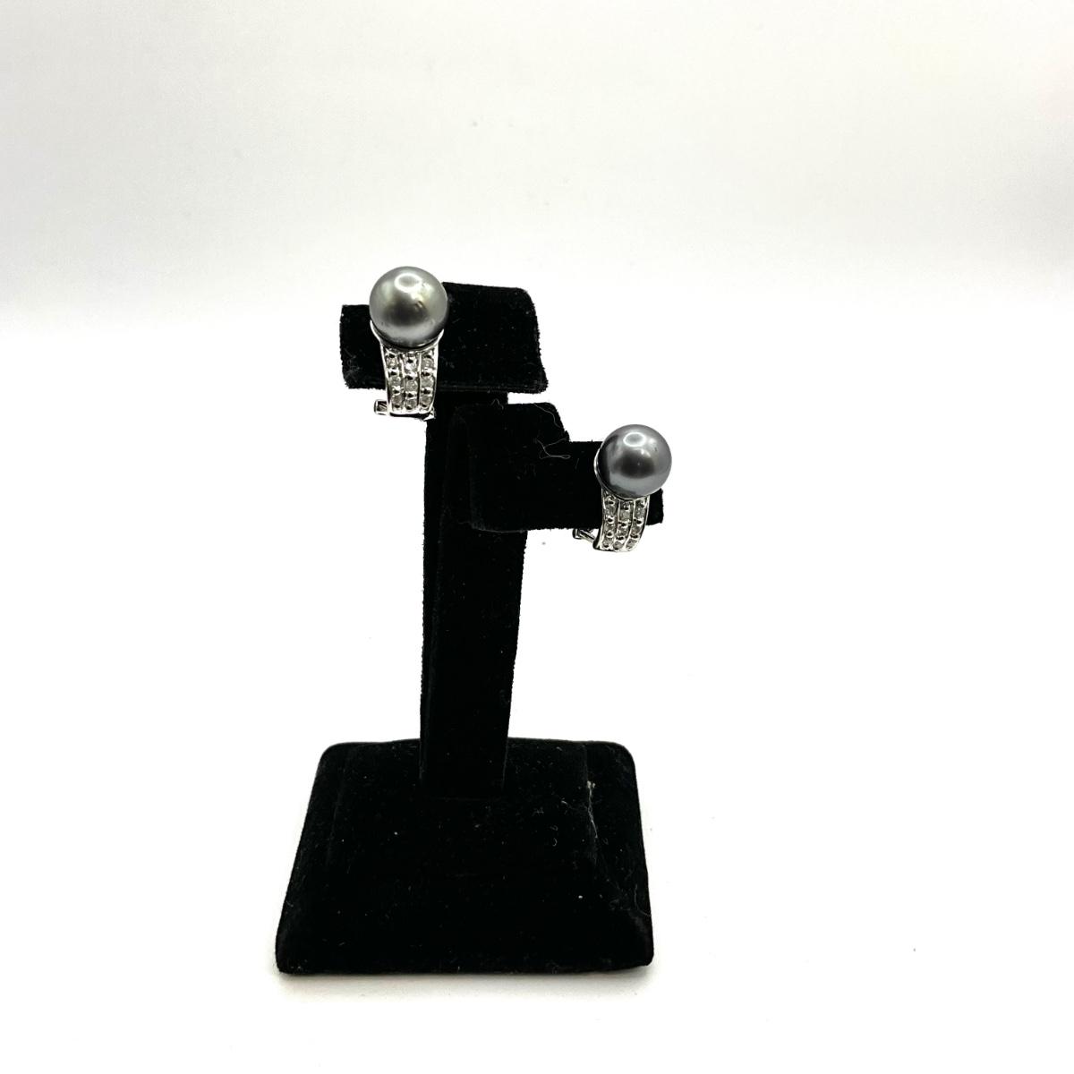 766 14k White Gold Black Pearl and Diamond Earrings