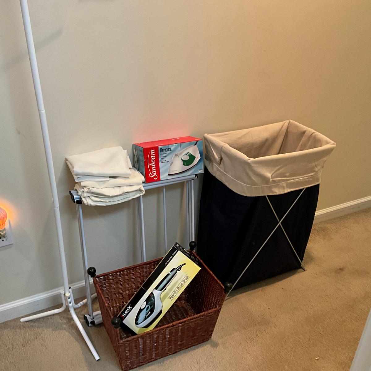 Laundry Basket, Steam Brush, Sunbeam Iron, Laundry Hanging Stand