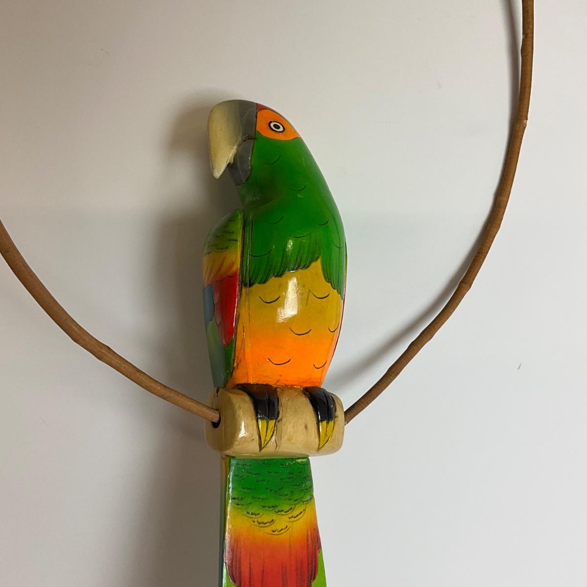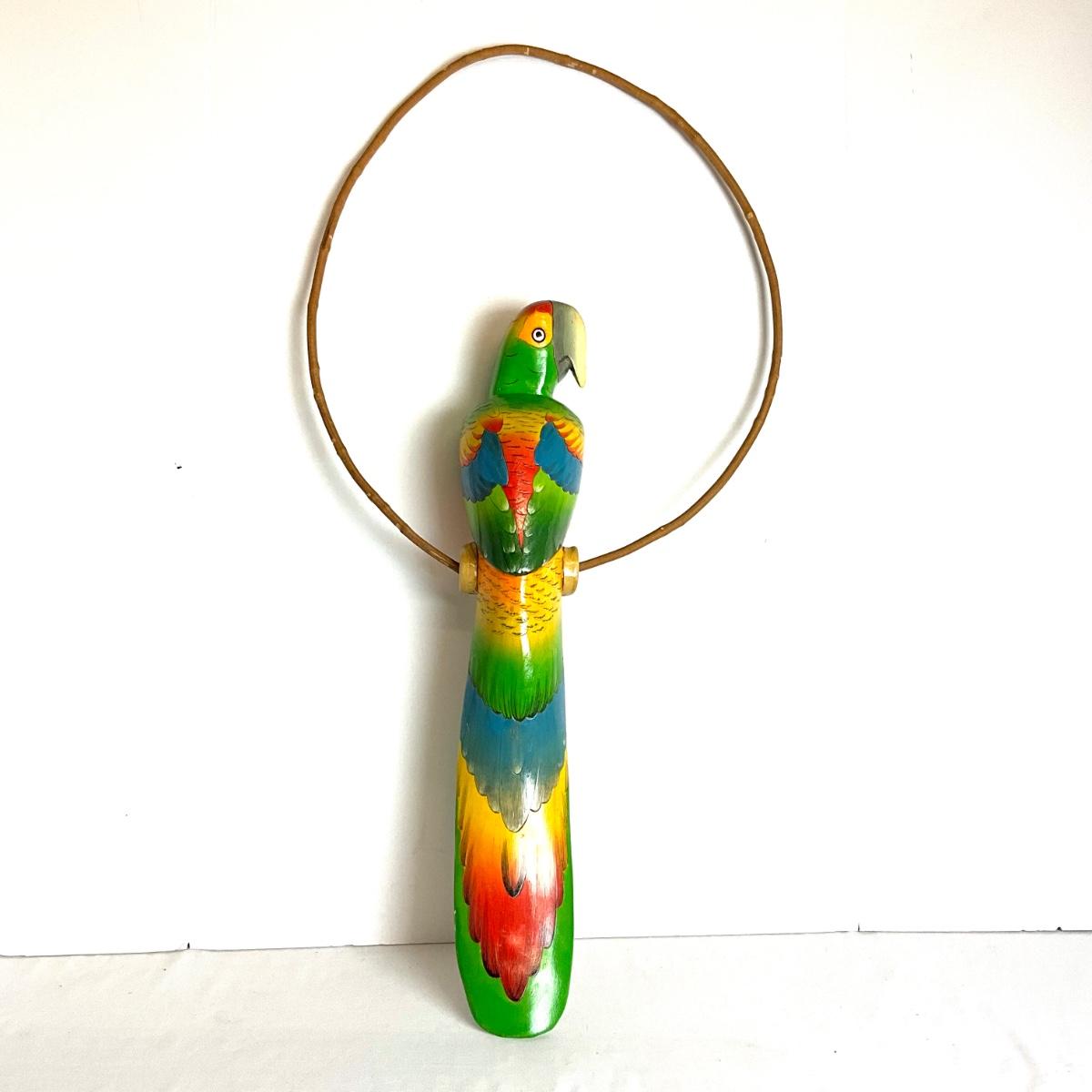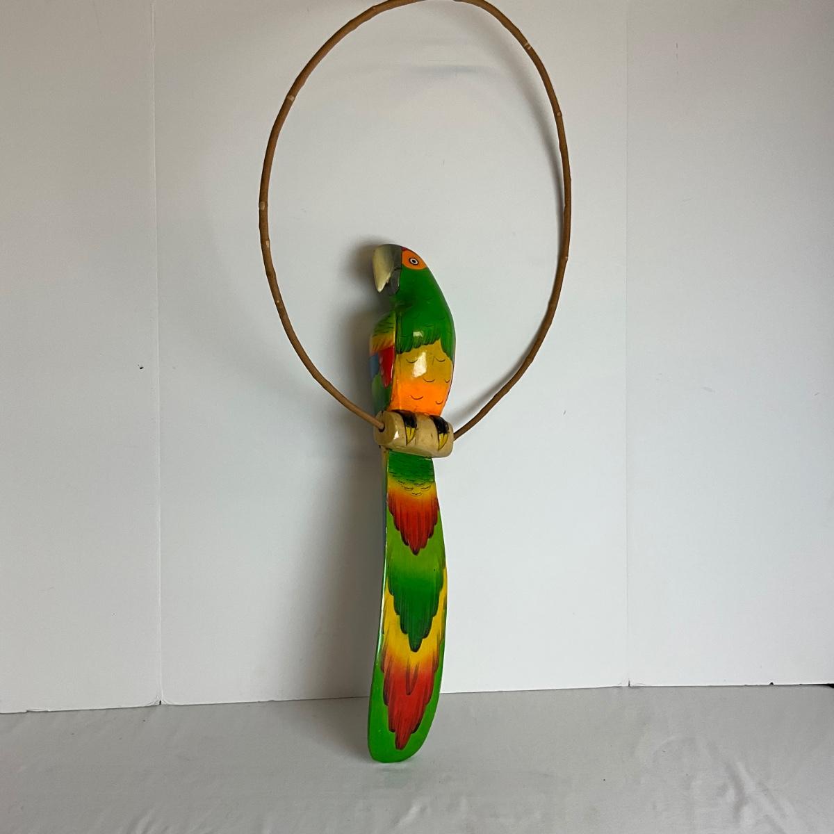 767 Wooden Hand Carved Painted Parrot on Bamboo Holder
