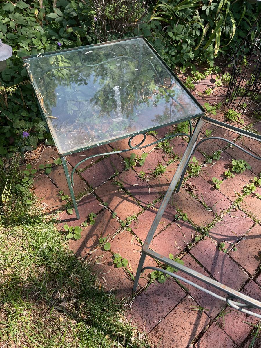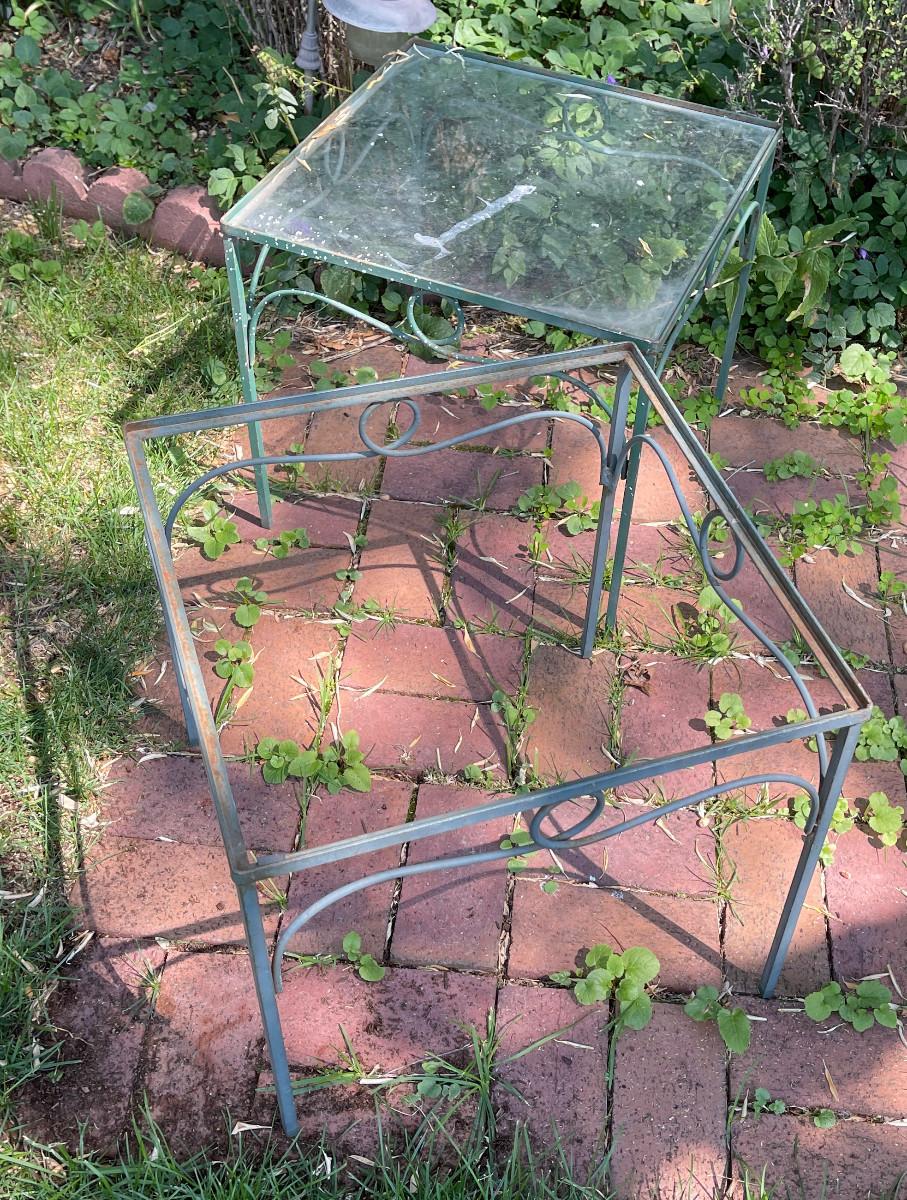 #768 - O 2 Square Wrought Iron Tables GREEN