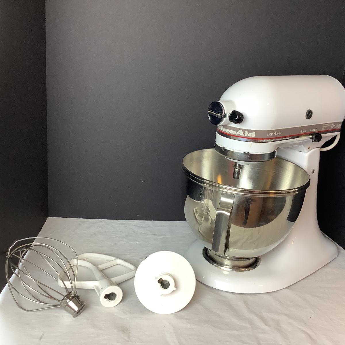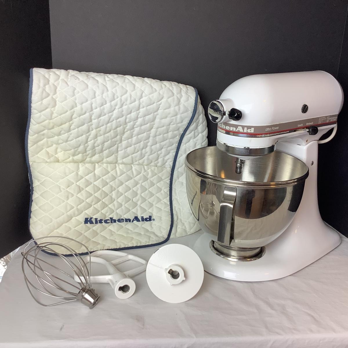 769 Kitchen Aid White Mixer with Two Bowls and Attachments with Cover