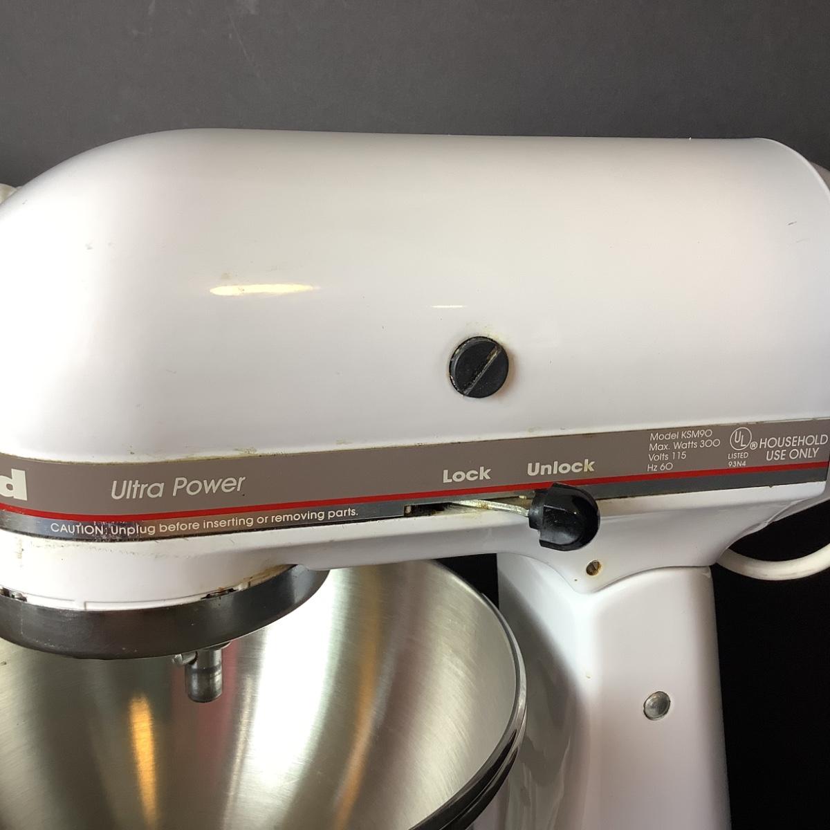 Model KSM90 comes with two bowls and three attachments and cloth cover