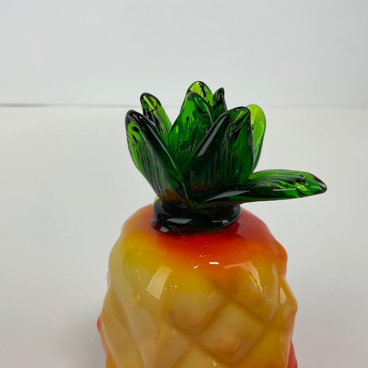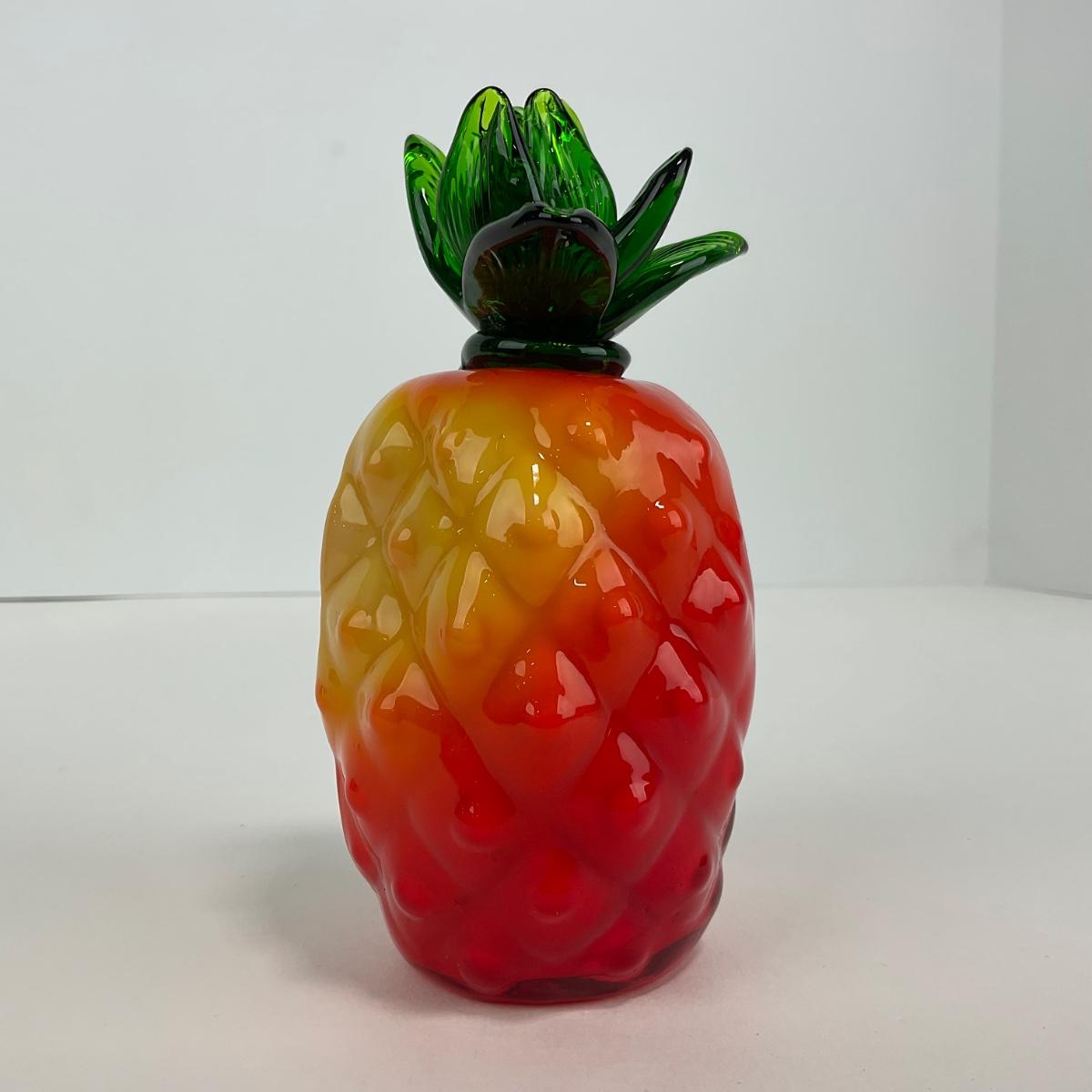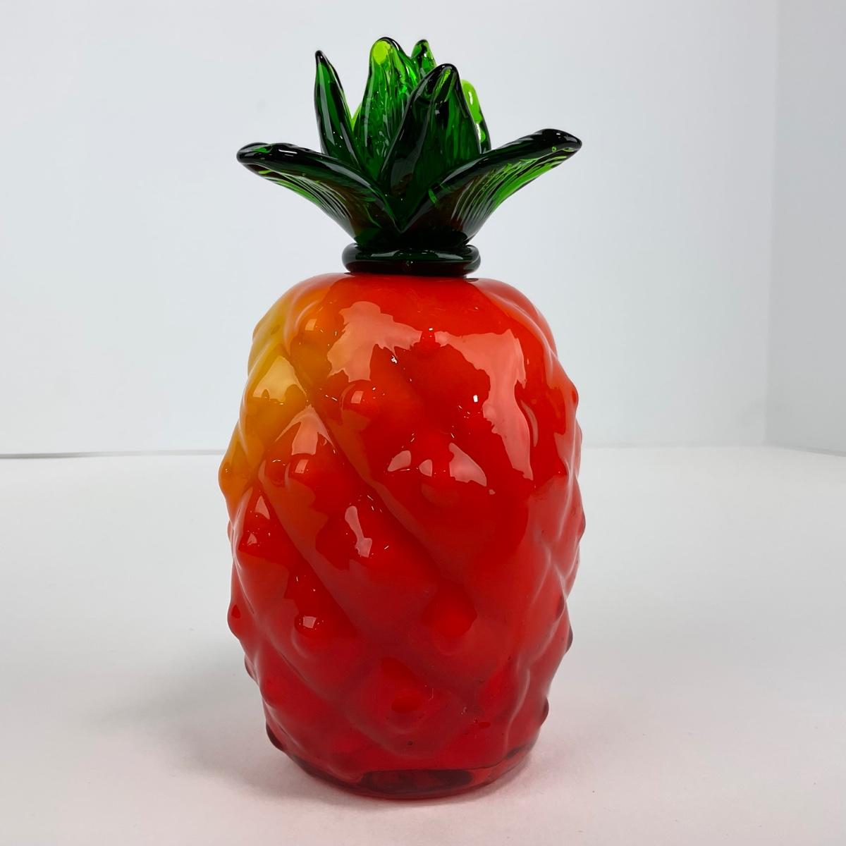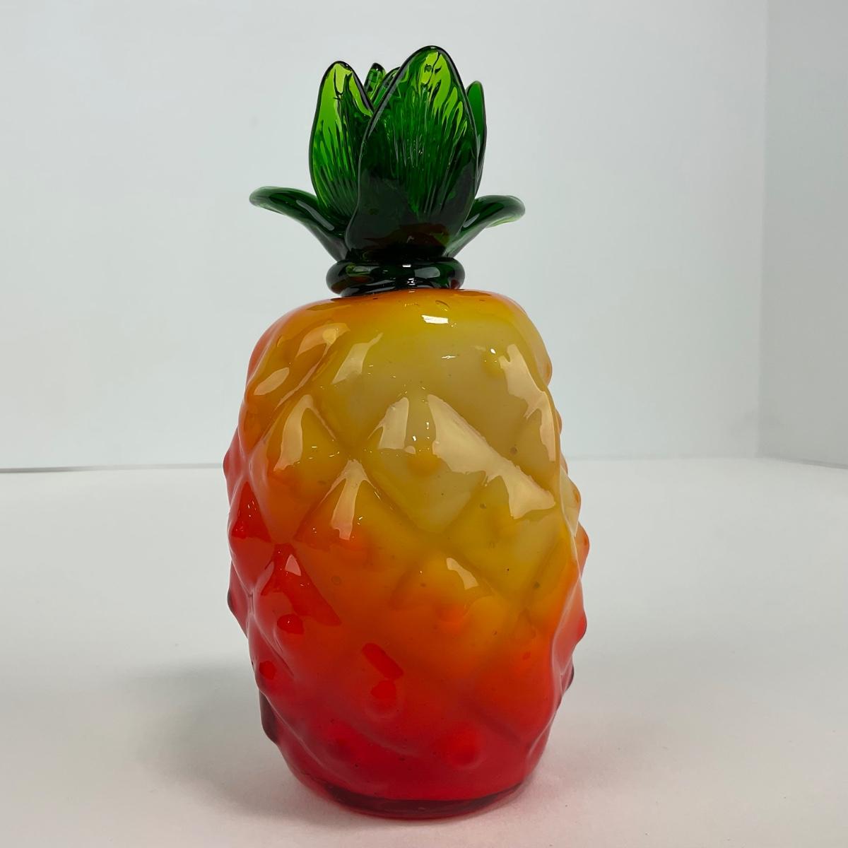 One vintage art glass colorful pineapple figure. This piece has no damage, and appears to be in great shape with no visable chips, cracks, or broken pieces. Please see photos for details and condition. Any condition statement is given as a courtesy to a client, is an opinion, and should not be treated as a statement of fact. Reference to condition written, oral or within a condition report shall not be regarded as a full account of condition and may not include all defects, alterations, or restorations. Absence of a condition report does not imply a lot is flawless or lacking imperfections or damage. Katherine’s Auction & Appraisal Service shall have no responsibility for any error or omission. Returns shall not be accepted on the basis of condition. ::: Shipping is available on this lot. If you require shipping you must let us know at the close of the auction. We will coordinate with you after the item has been won. Shipping fees will include insurance up to or exceeding the value of all items being mailed. If you have any questions regarding this lot please contact the auctioneer either via this website, by direct email or by phone. PICK UP TIMES and other important information can be found in the TERMS and DESCRIPTION of the auction. Please take a look for pertinent information. Thanks!