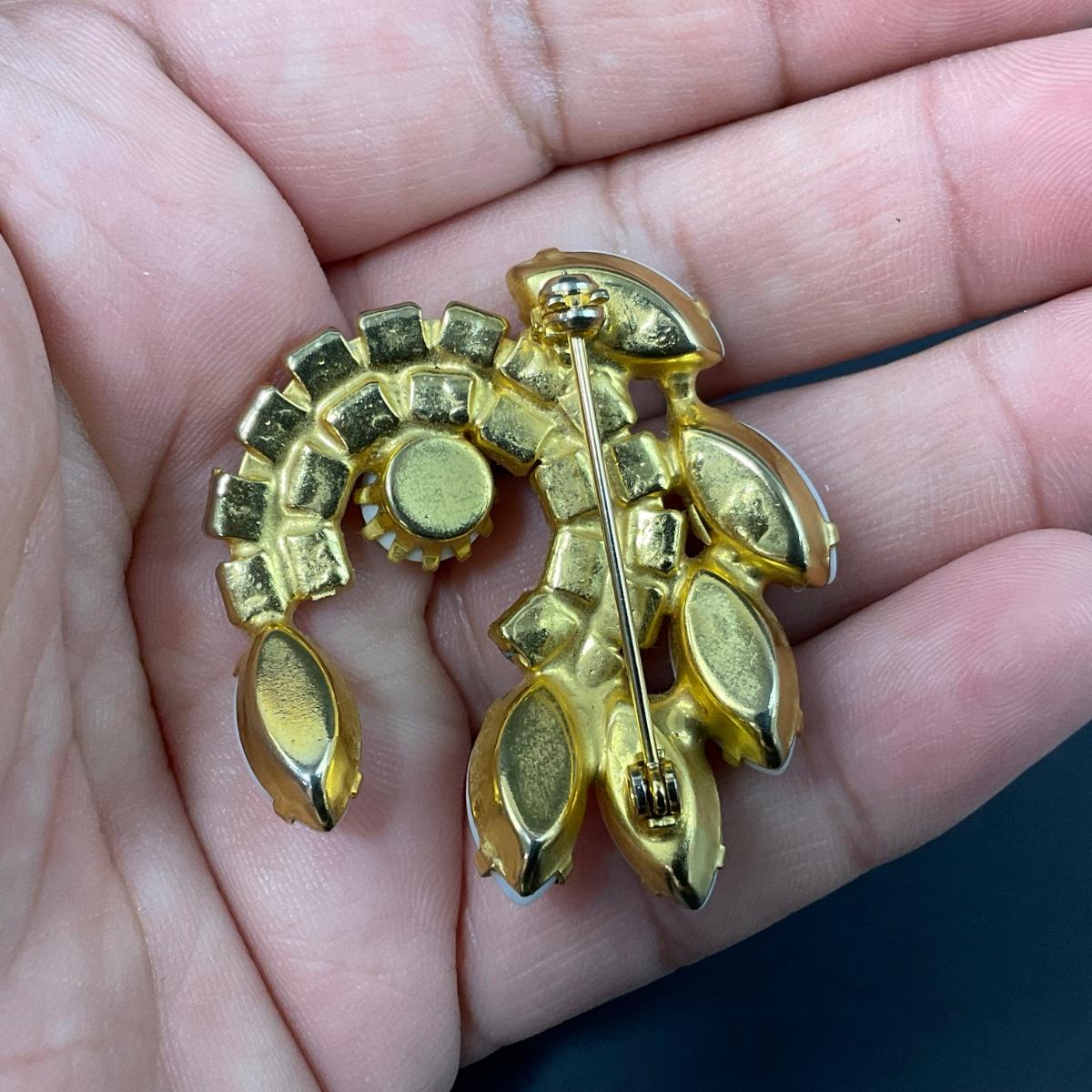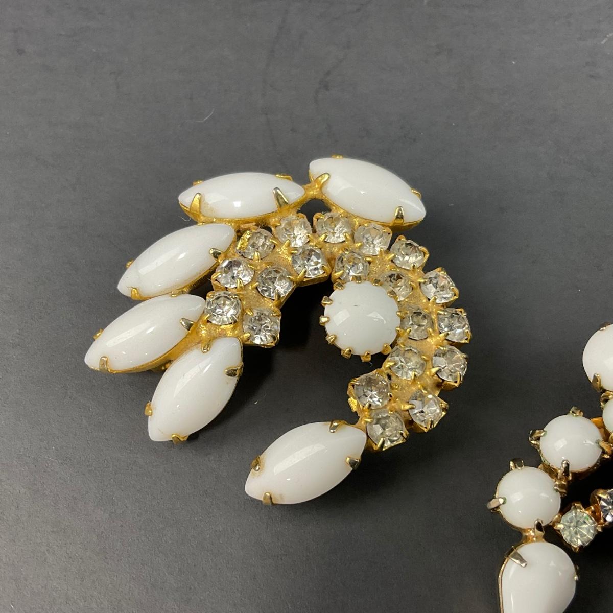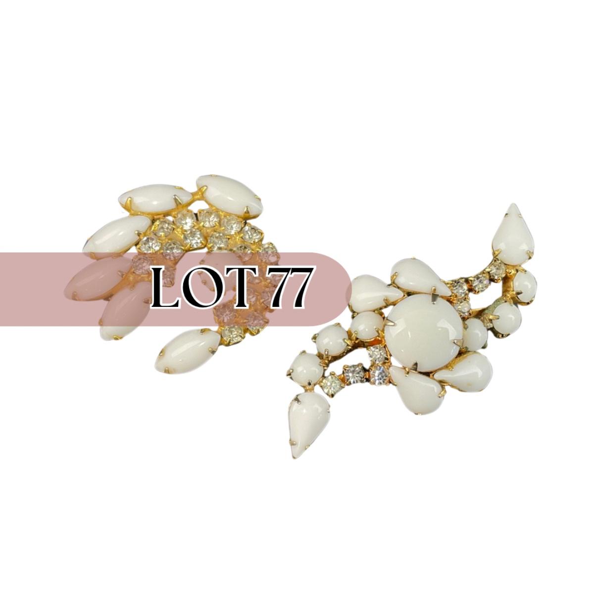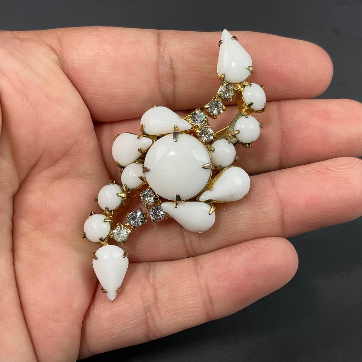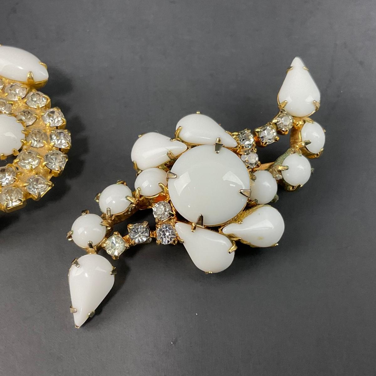 Two vintage milk glass brooches. This piece has no damage, and appears to be in great shape with no visable chips, cracks, or broken pieces. Please see photos for details and condition. Any condition statement is given as a courtesy to a client, is an opinion, and should not be treated as a statement of fact. Reference to condition written, oral or within a condition report shall not be regarded as a full account of condition and may not include all defects, alterations, or restorations. Absence of a condition report does not imply a lot is flawless or lacking imperfections or damage. Katherine’s Auction & Appraisal Service shall have no responsibility for any error or omission. Returns shall not be accepted on the basis of condition. ::: Shipping is available on this lot. If you require shipping you must let us know at the close of the auction. We will coordinate with you after the item has been won. Shipping fees will include insurance up to or exceeding the value of all items being mailed. If you have any questions regarding this lot please contact the auctioneer either via this website, by direct email or by phone. PICK UP TIMES and other important information can be found in the TERMS and DESCRIPTION of the auction. Please take a look for pertinent information. Thanks!