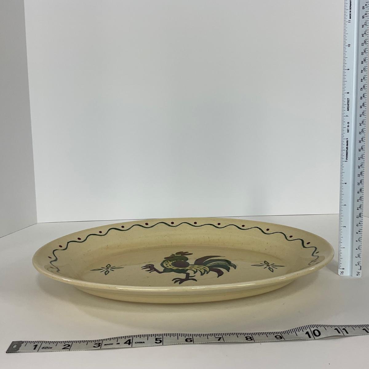 One Rooster Metlox poppytrail California Pottery platter. In great shape. Please see photos for details and condition. ::: Shipping is available on this lot. If you require shipping you must let us know at the close of the auction. We will coordinate with you after the item has been won. Shipping fees will include insurance up to or exceeding the value of all items being mailed. If you have any questions regarding this lot please contact the auctioneer either via this website, by direct email or by phone. PICK UP TIMES and other important information can be found in the TERMS and DESCRIPTION of the auction. Please take a look for pertinent information. Thanks!
