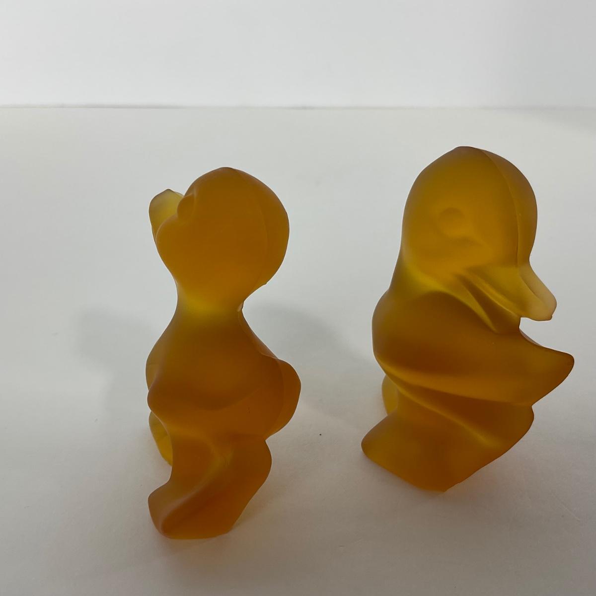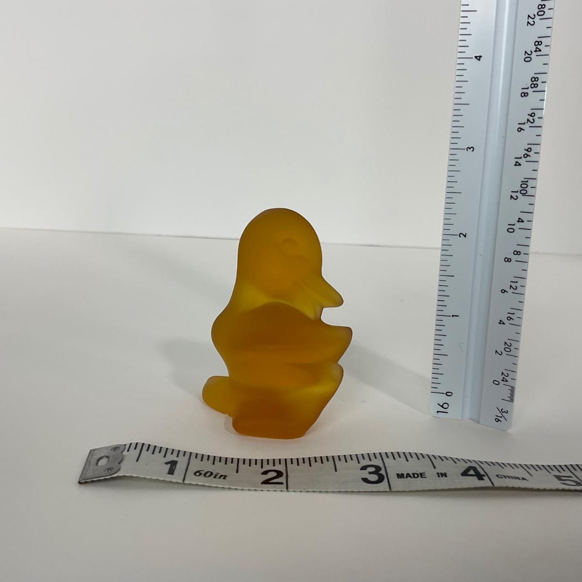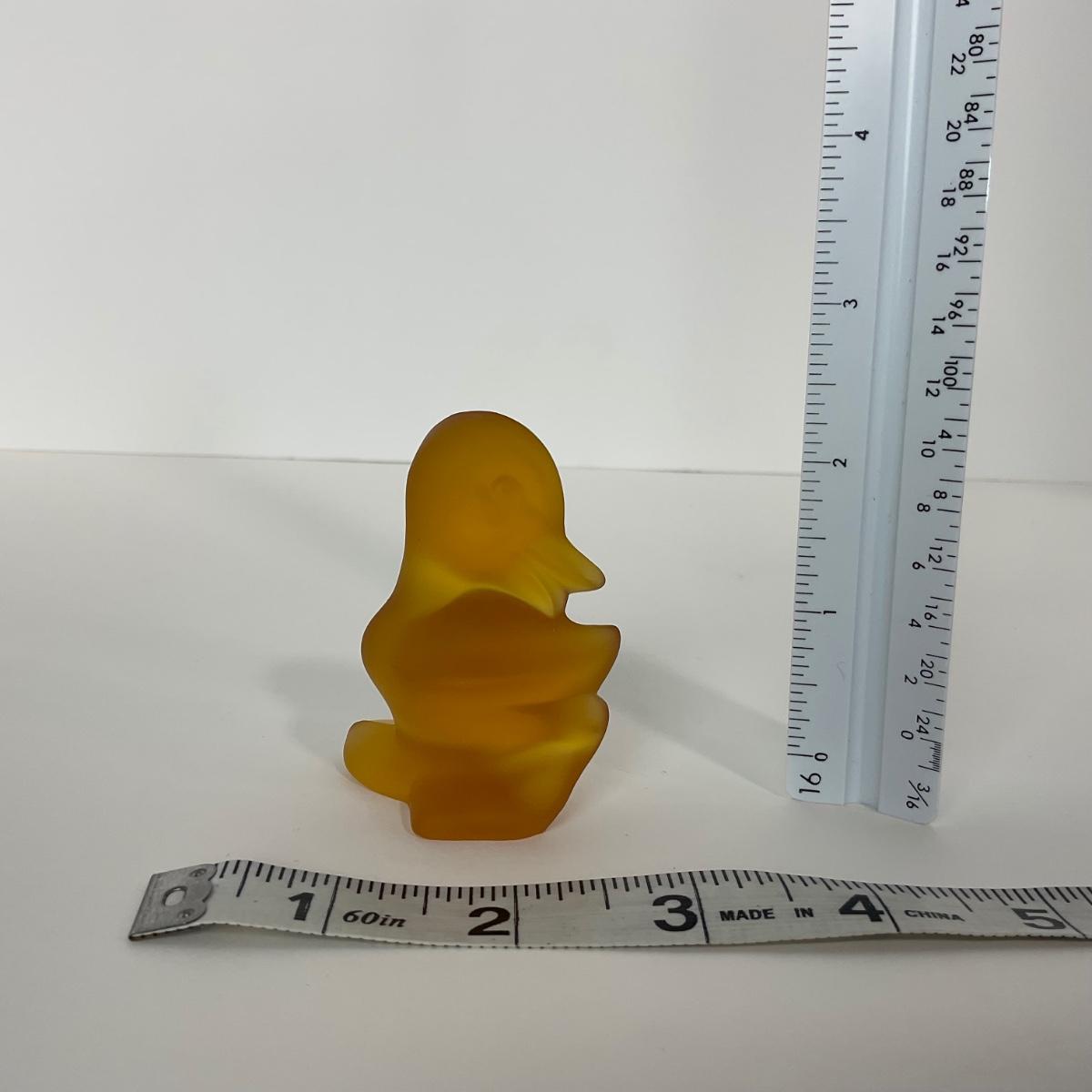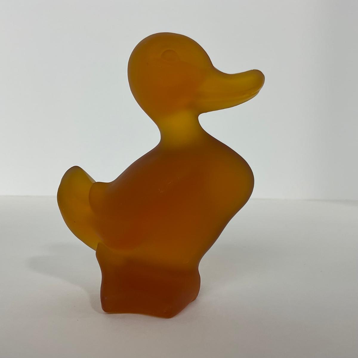 Four frosted amber crystal Fostoria figures including one momma duck and three ducklings. There are a few small flea bite marks on these pieces but otherwise appear to be in good condition. Please see photos for details and condition. Any condition statement is given as a courtesy to a client, is an opinion, and should not be treated as a statement of fact. Reference to condition written, oral or within a condition report shall not be regarded as a full account of condition and may not include all defects, alterations, or restorations. Absence of a condition report does not imply a lot is flawless or lacking imperfections or damage. Katherine’s Auction & Appraisal Service shall have no responsibility for any error or omission. Returns shall not be accepted on the basis of condition. ::: Shipping is available on this lot. If you require shipping you must let us know at the close of the auction. We will coordinate with you after the item has been won. Shipping fees will include insurance up to or exceeding the value of all items being mailed. If you have any questions regarding this lot please contact the auctioneer either via this website, by direct email or by phone. PICK UP TIMES and other important information can be found in the TERMS and DESCRIPTION of the auction. Please take a look for pertinent information. Thanks!