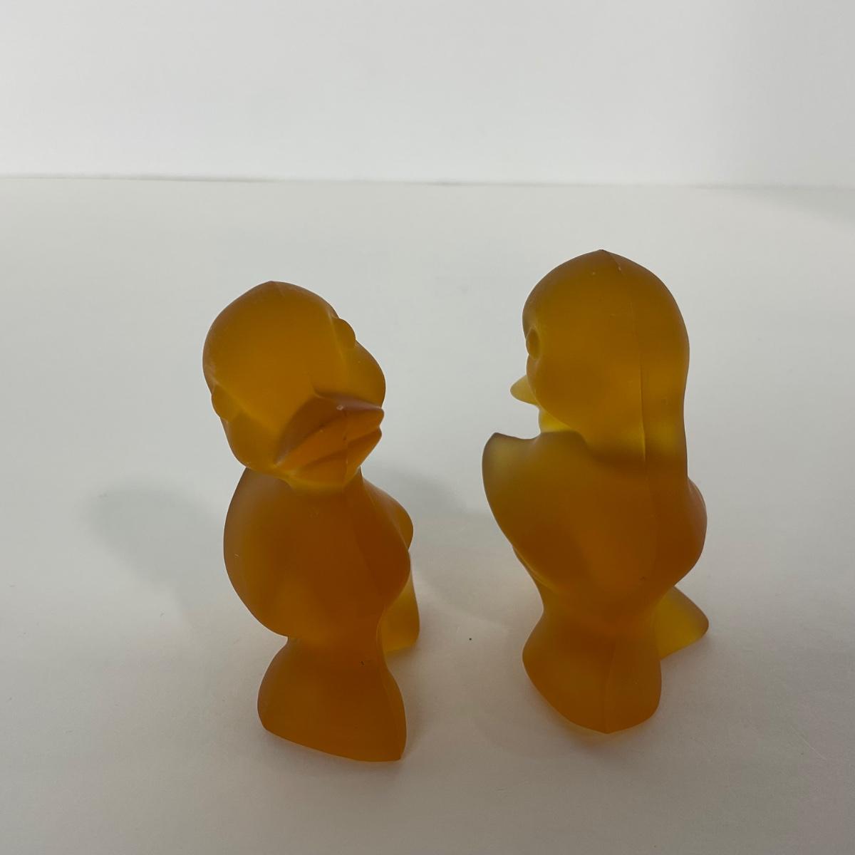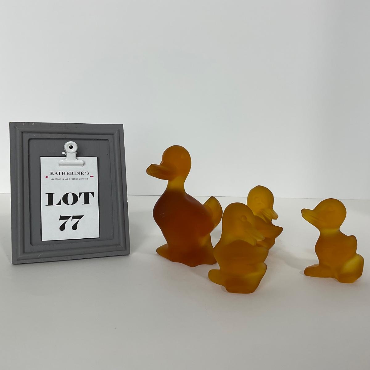 -77- FOSTORIA | Crystal Frosted Amber Momma Duck & Ducklings