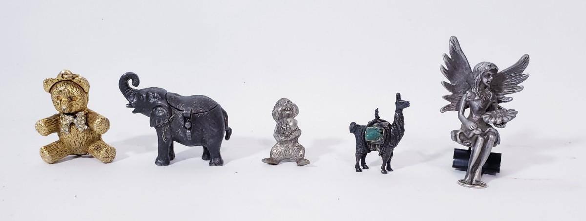 Variety of small items. The bear and elephant open up. (The camel is missing a tiny stone on one side as pictured)