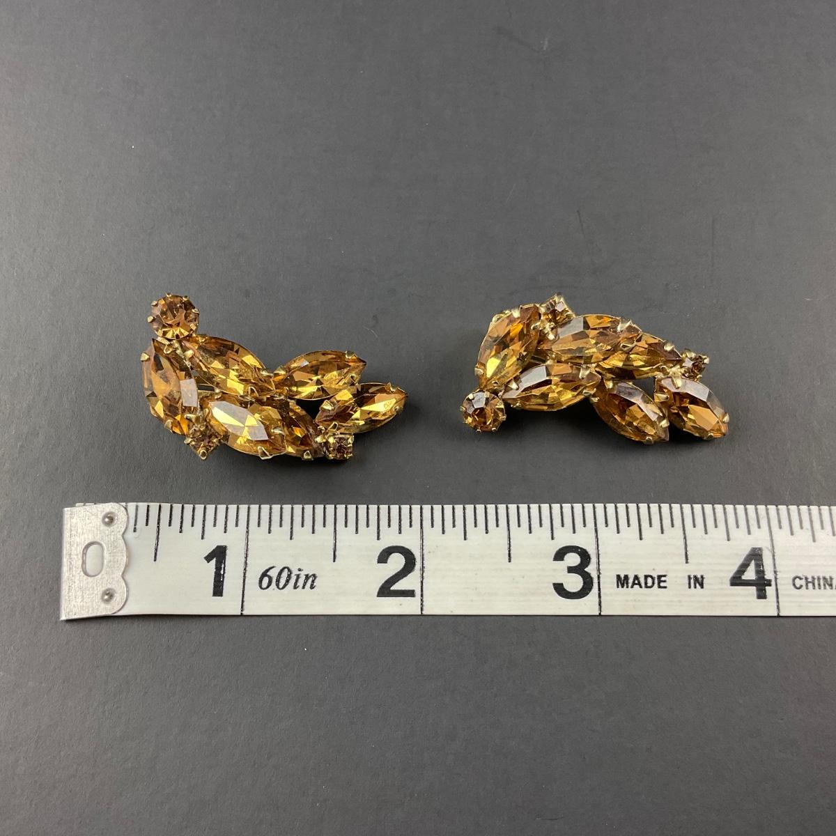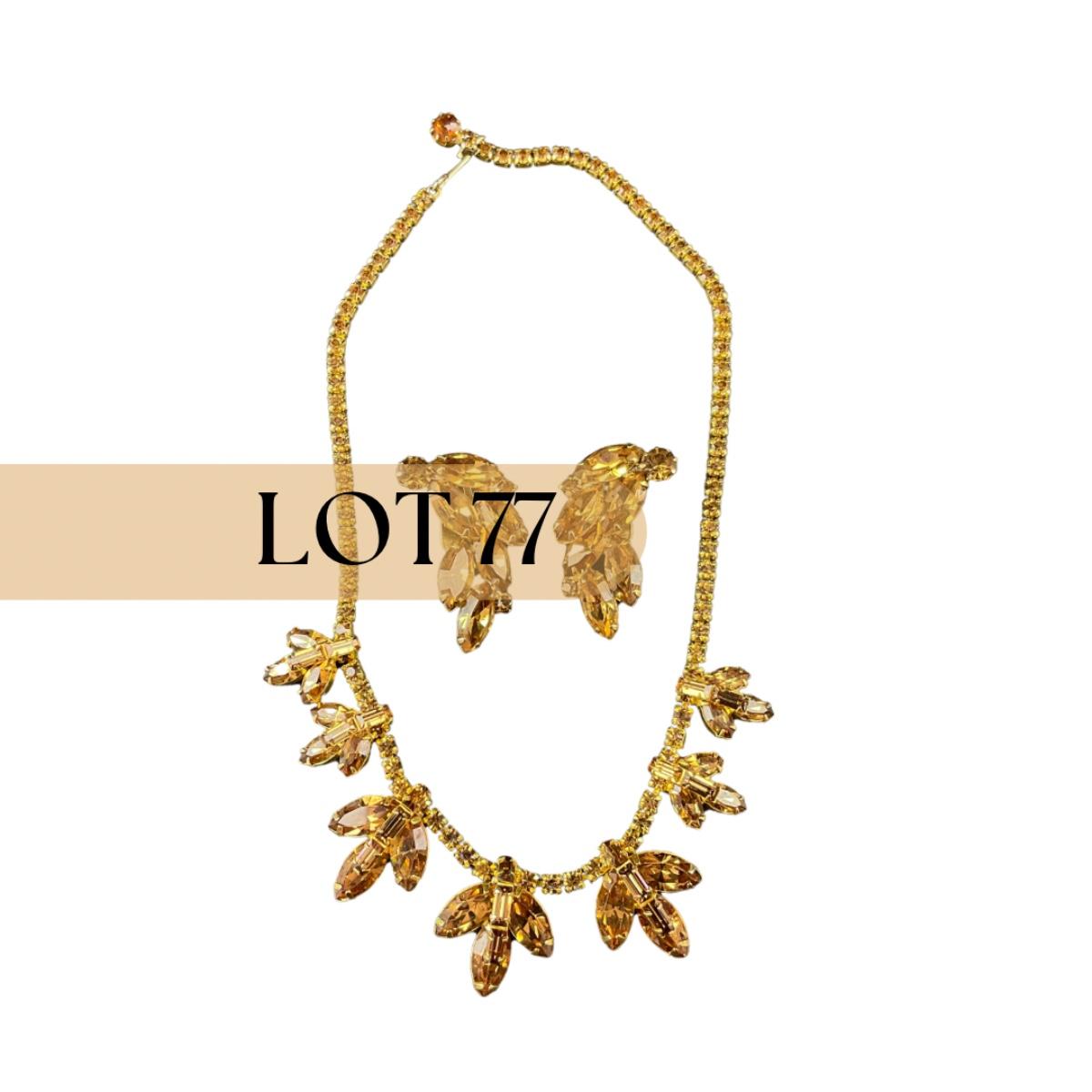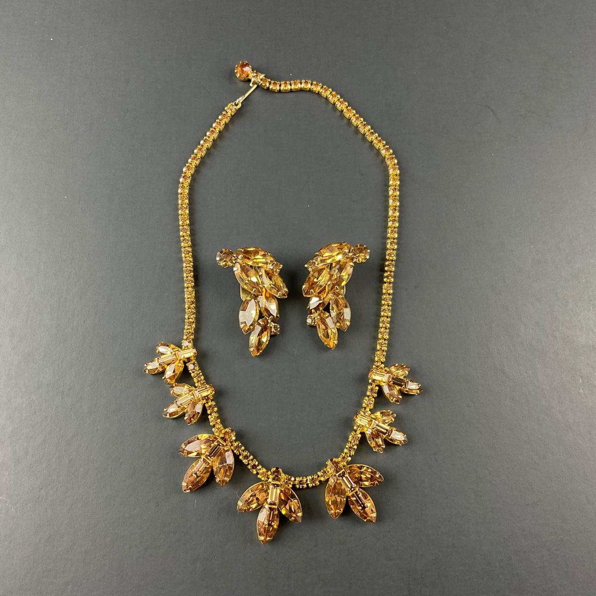 -77- WEISS | Rhinestone Amber Necklace & Earrings | Marked