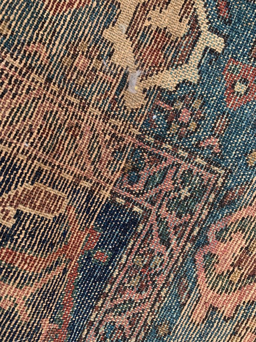 Very early rug shows wear.. Selling “as is, as found” in the estate. See many photos for content, condition and measurements. NO BUYERS PREMIUMS OR CREDIT CARD FEES. All items start at just $10 and sell with NO RESERVE to the highest bidder. All bids are a binding contract to pay, pick-up, or request shipping and all sales are final. Any abandoned merchandise will be disposed of and purchase price not refunded, see complete “terms and conditions”.