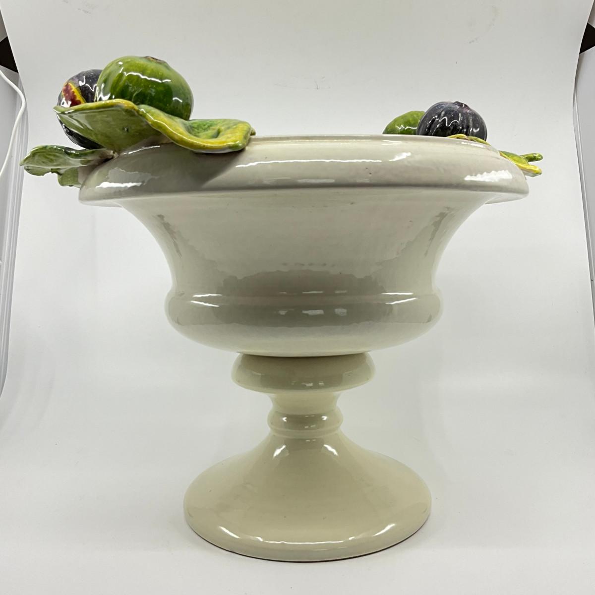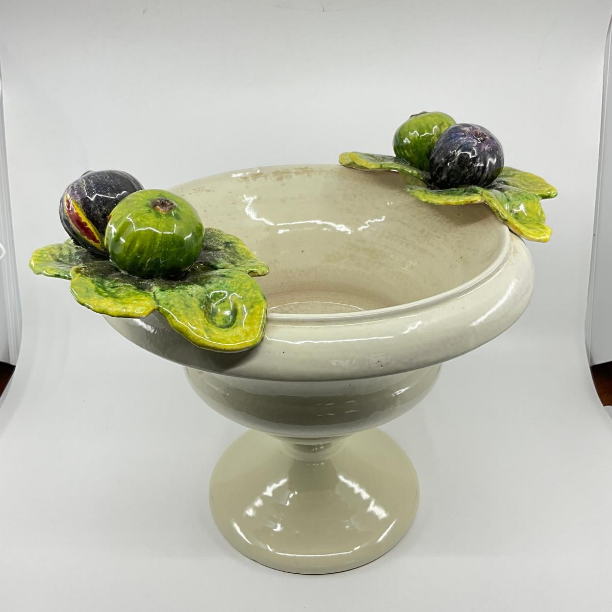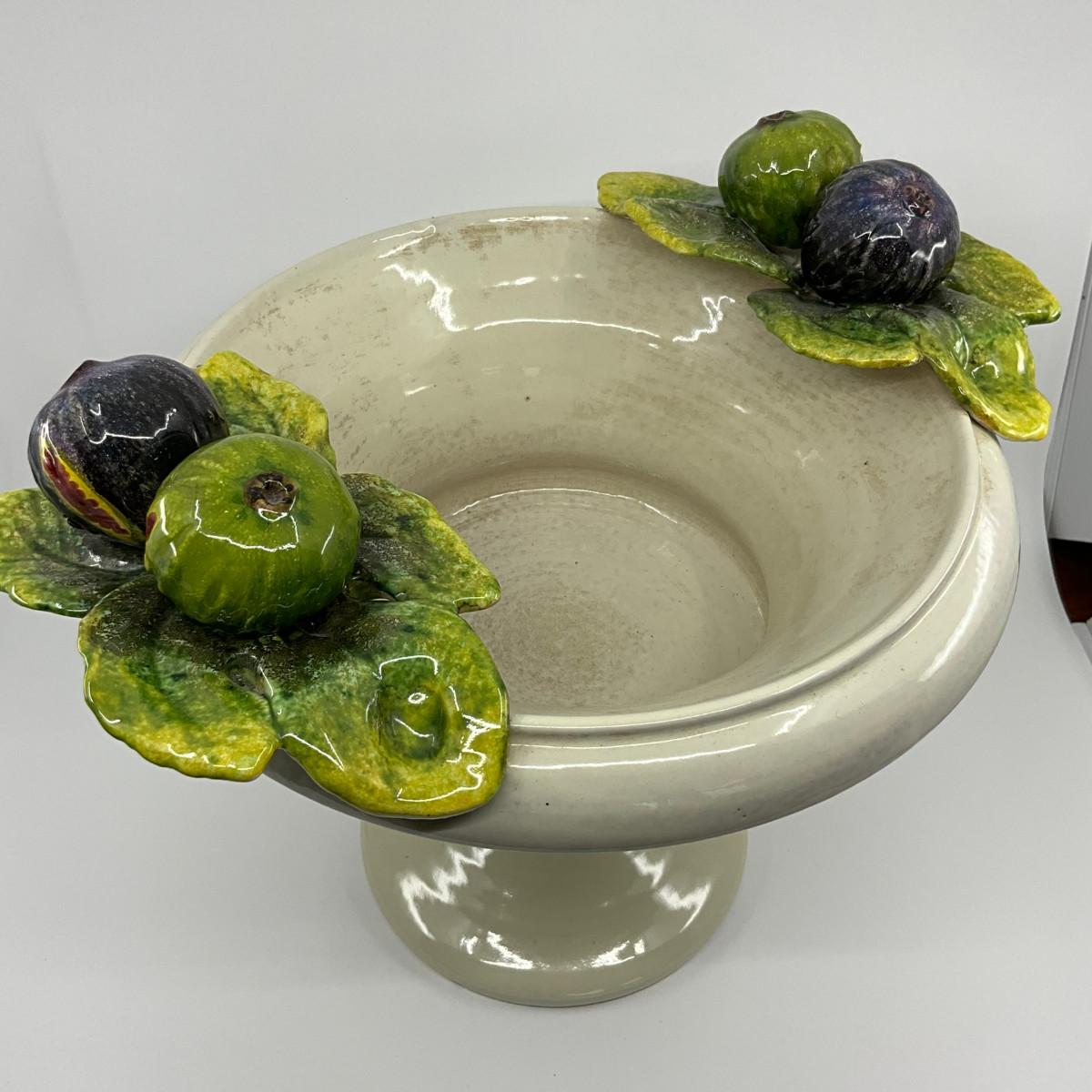 773 Hand Made Ceramic Italian Fruit Compote With Fig Design Handles