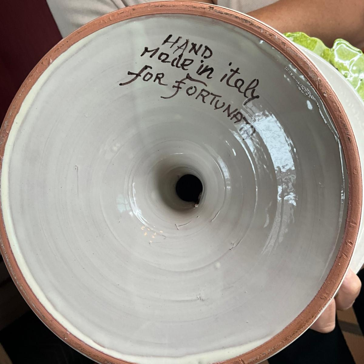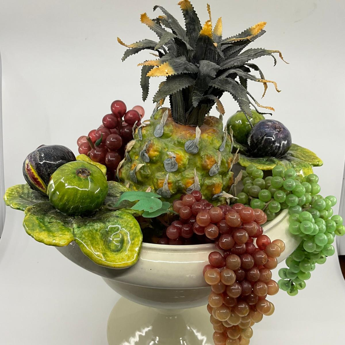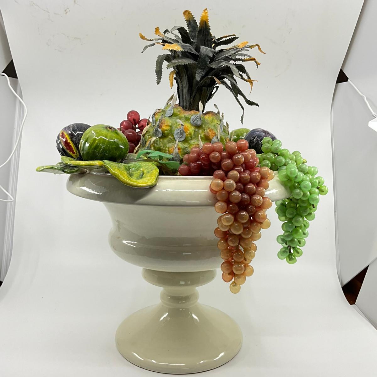 773 Hand Made Ceramic Italian Fruit Compote With Fig Design Handles