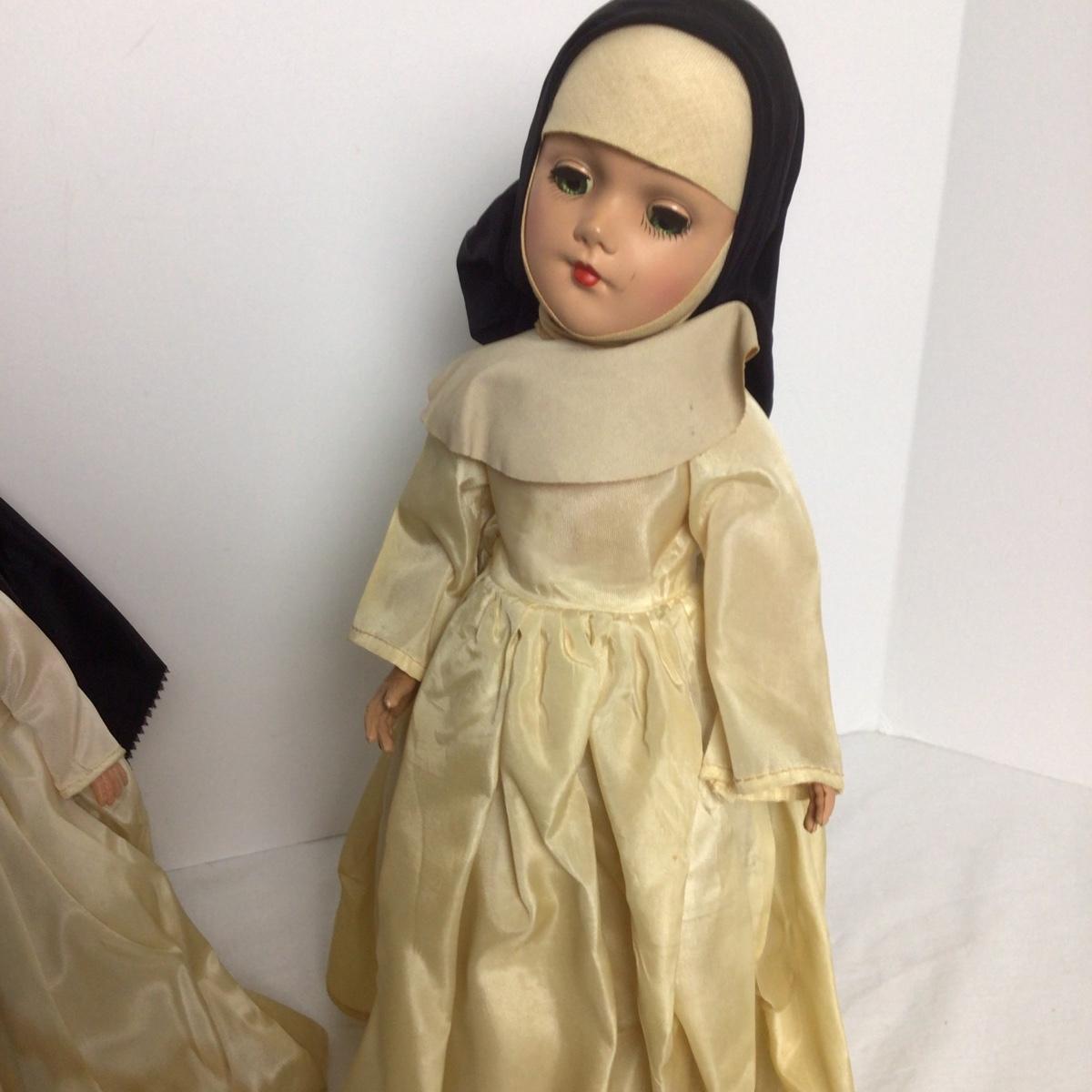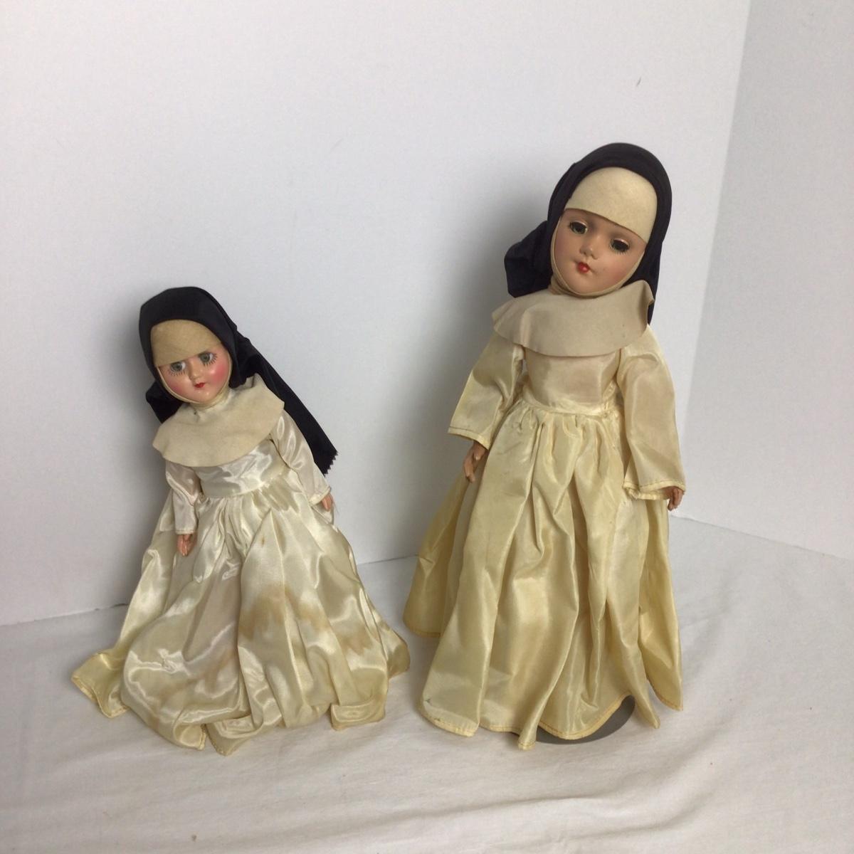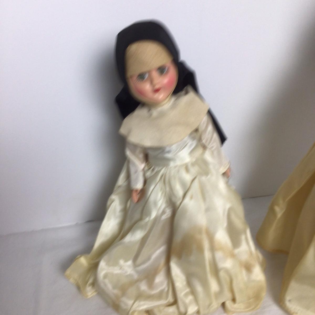 Dolls are 11” x 15” tall, there is discoloration present on the outfits.